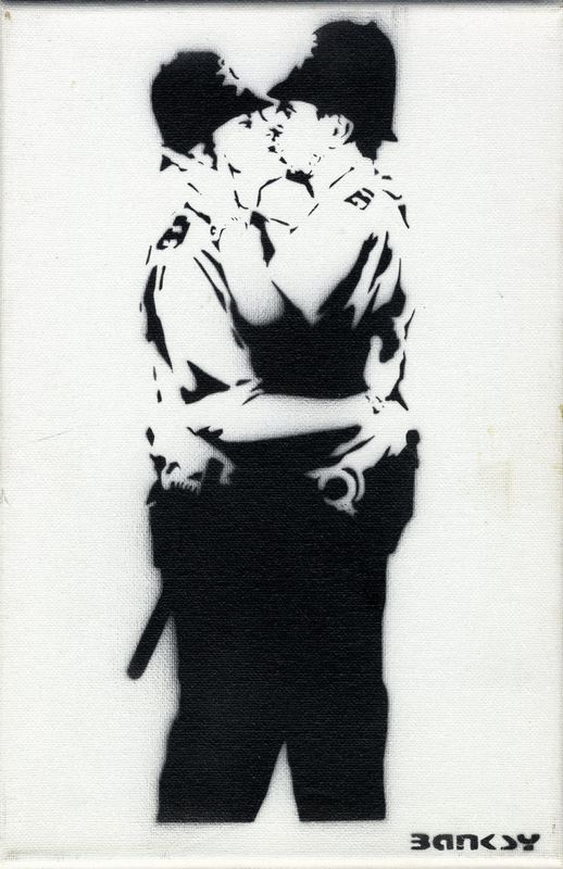 Vernice spray su tela. cm 30x20. Firma in basso a destra. Al verso timbro di Dismaland. Opera accompagnata dal certificato di autenticità di Dismaland. Questa è una delle rare opere Dismaland su tela. Provenienza: Performance di Banksy a Dismaland (agosto/settembre 2015); Importante collezione fiorentina.