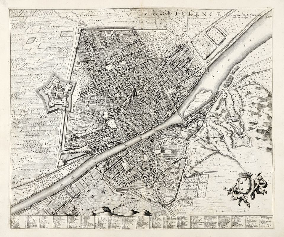 Incisione in rame. mm 505x605. Foglio: mm 558x658. Da Nouveau theatre d'Italie, ou description exacte de ses villes, palais, Eglises, principaux edifices... pubblicato ad Amsterdam nel 1704/1705 e di nuovo nel 1724.