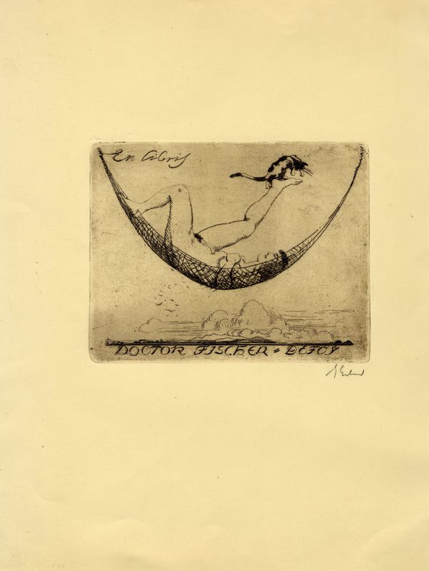 Ex libris dr. Kuchenbecker e Ex libris doctor Fischer, Defoy. Entrambe incisioni all'acquaforte. mm 98/110x140/150. Fogli: mm 190/295x220/285. Una delle due è firmata a matita in basso a destra.