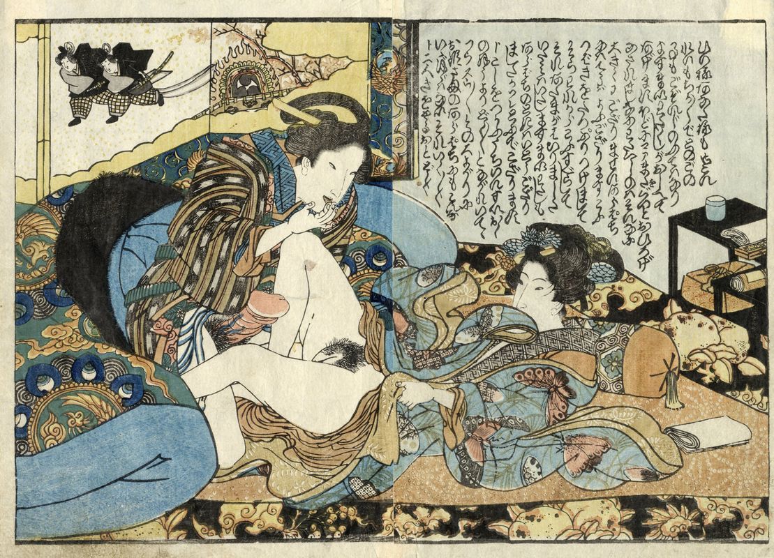 Xilografia a colori: nishike-e. Formato: Ch?ban orizzontale (mm 160/195/200x200/260/275). Lotto di sei tavole a soggetto erotico, cinque su doppia pagina e una, di epoca più tarda, impressa su foglio unico.
