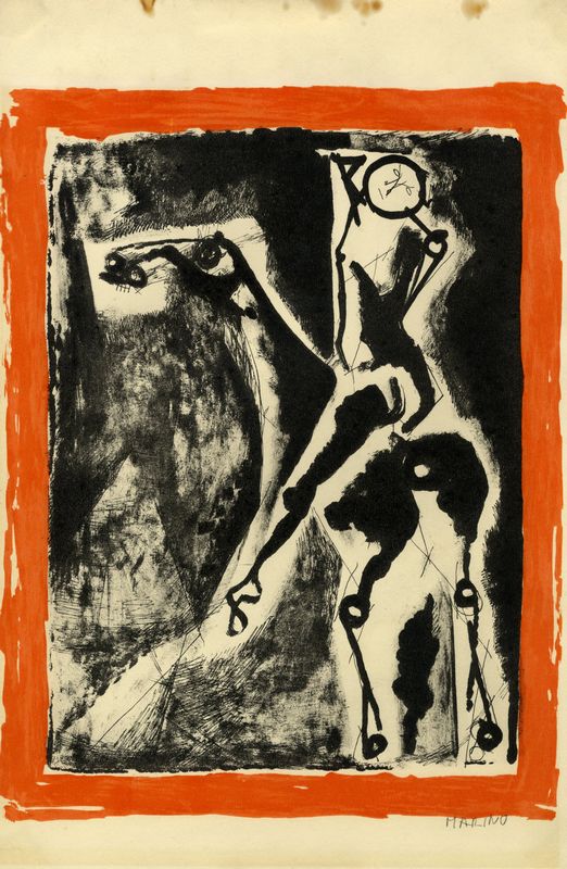 Litografia a 3 colori. mm 320x220. Foglio: mm 380x260. Firma a penna e inchiostro di china in basso a destra e tiratura a matita in basso a sinistra. es. 2/12. SI AGGIUNGE: 2) Senza titolo. Litografia. mm 325x250. Foglio: mm 395x267. Firma a matita in basso a destra.