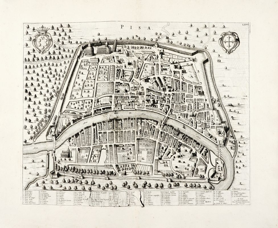 Incisione in rame. mm 420/455x528/548. Foglio: mm 560x658. Due vedute da Nouveau theatre d'Italie, ou description exacte de ses villes, palais, Eglises, principaux edifices... pubblicato ad Amsterdam nel 1704/1705 e di nuovo nel 1724.