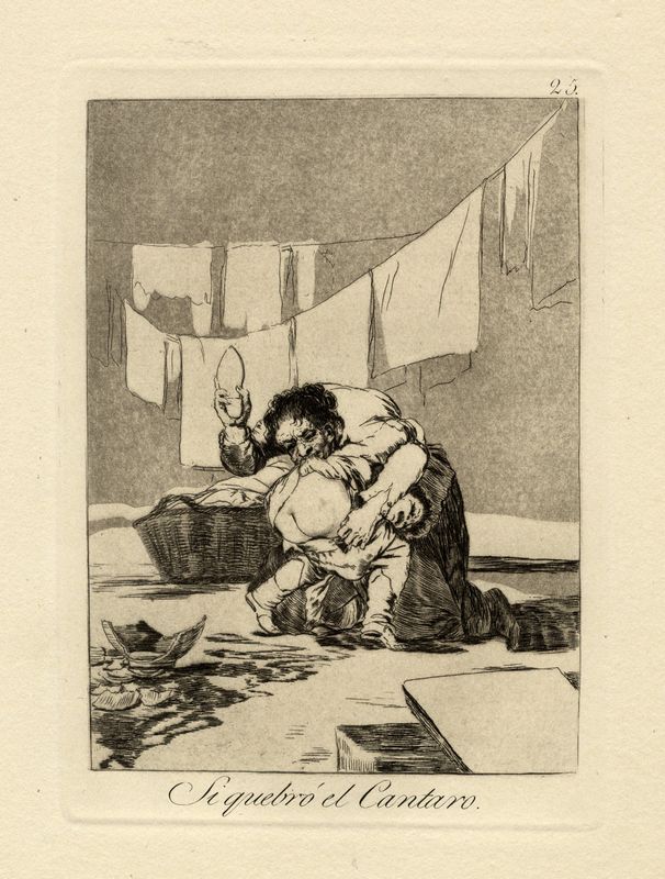 Acquaforte, acquatinta e puntasecca. mm 215x150. Foglio: mm 335x238. Harris, 60. Con il titolo al margine inferiore e il numero in alto a destra. Venticinquesima tavola da Los Caprichos serie in 80 tavole pubblicata per la prima volta dallo stesso Goya nel 1799, ed edita in complessive 12 edizioni. Bellissima prova nel III stato su 3, comune a tutte le impressioni editoriali, stampata a inchiostro nero e seppia su carta spessa non vergellata priva di filigrana. Esemplare dalla V edizione, dopo la bisellatura della lastra, stampata dalla Calcografia per la Real Academia tra il 1881 e il 1886.