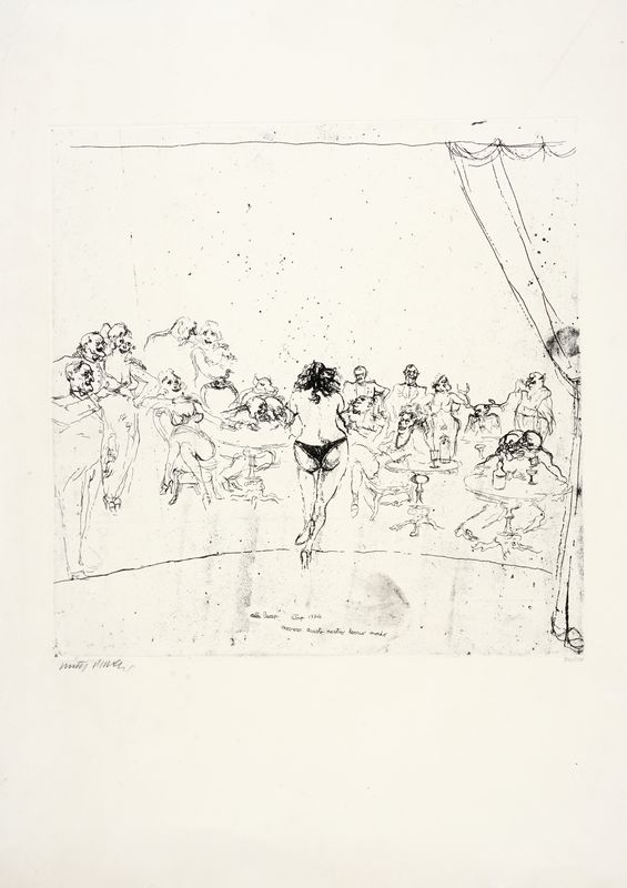 Puntasecca. mm 405x400. Foglio: mm 700x500. Firma a matita in basso a sinistra, tiratura in basso a destra. Firma, data e titolo in basso al centro. Es. 90/120.