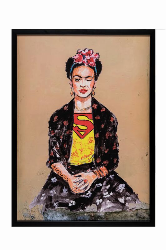 Offset. mm 690x390 (visibili). Firmata a pennarello nero in basso a sinistra. L'iconica artista messicana, dopo essere apparsa a Firenze e Roma, si è vestita di azzurro per il Museo Archeologico Nazionale di Napoli dove è stata protagonista, insieme ad altre 7 donne emblematiche, nella mostra SuperWomen LeDiesis.