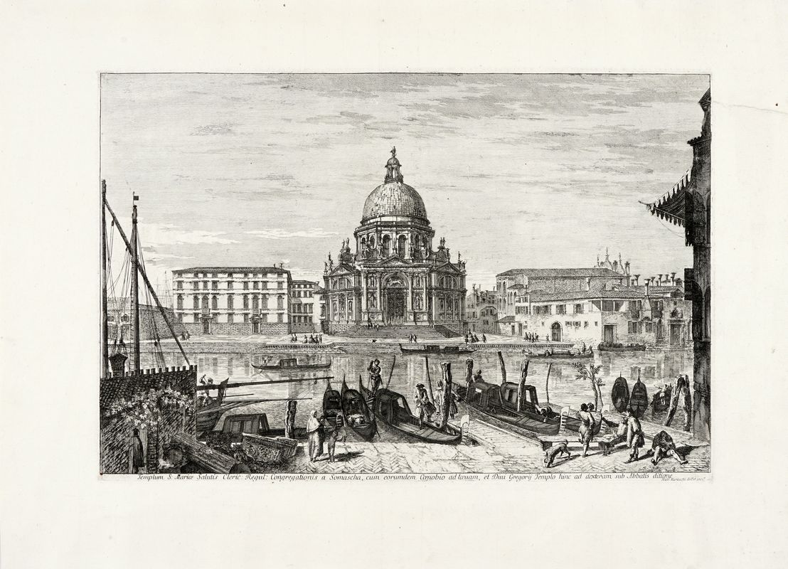 Acquaforte. mm 315x470. Foglio: mm 450x615. Succi (1987), 16. Succi (2013), p. 254. Nel margine inferiore al centro il titolo in latino, a destra "Mich.l Marieschi del.t et inci.t". Tavola da Magnificentiores Selectioresque Urbis Venetiarum prospectus,... serie di ventuno grandi vedute di Venezia pubblicata per la prima volta nel giugno 1741. Bellissima impressione nel I stato di 4, prima della comparsa di "N.°12" in basso a sinistra e del rafforzamento di numerosi tratti a bulino, stampata con inchiostrazione brillante su carta vergellata veneta con filigrana "OLANDA sormontata dalle lettere FF gigliate" e "grande stemma coronato con stella caudata" (Montecuccoli, p. 157, 5a) .