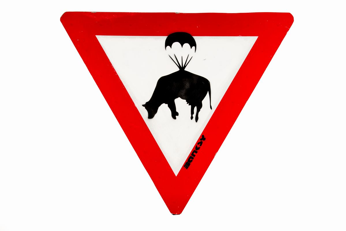 Vernice spray su cartello stradale. cm 69x69. Firma in basso a sinistra. Opera accompagnata dal certificato di autenticità di Rare&Signed con il numero: R&SD303611197. Provenienza: importante collezione londinese; importante collezione fiorentina.