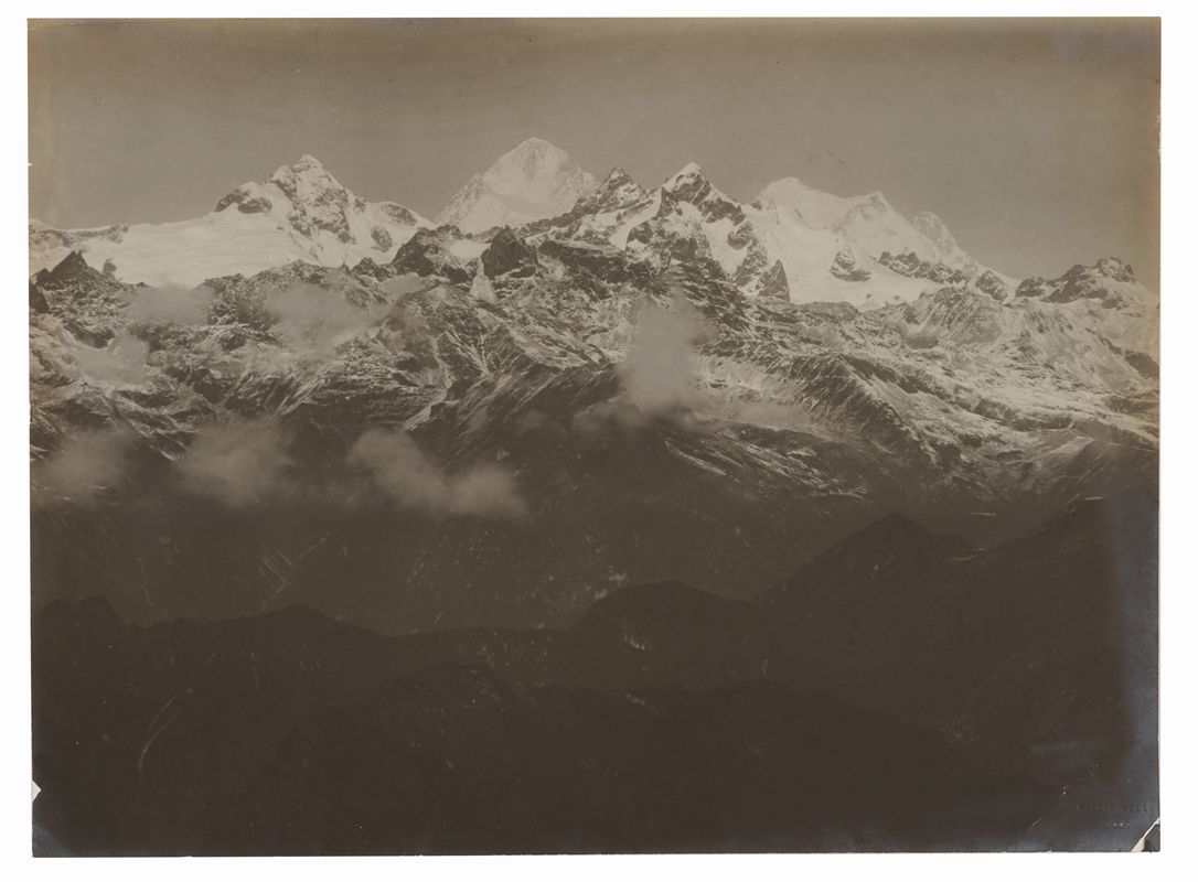 Gelatina ai sali d'argento, mm. 288x380, virata in doppio tono. Nell'immagine, in basso a destra, timbro a secco: "VITTORIO SELLA / BIELLA". Sul verso, annotazione autografa a inchiostro: "Groupe du M.t Everest 8840 m. (Nepaul) / depuis le Choonjerma-pass 4500 m. environ / telephotographie a la distance de 130 kilometres". Sotto, nell'angolo in basso a destra: "N.° 135". Stampa in stato di conservazione discreto, con due pieghe nell'angolo in basso a destra e una piccola lacuna sul bordo sinistro; specchio d'argento e ingiallimento lungo i bordi.