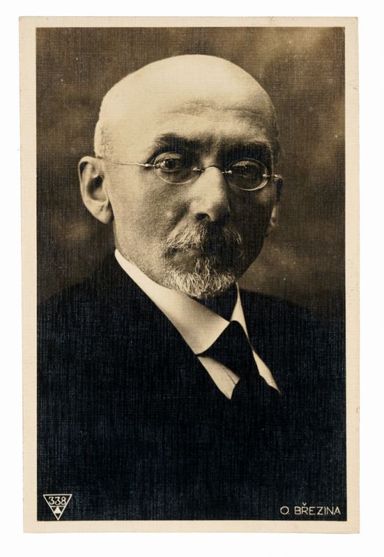 Due cartoline stampate alla gelatina bromuro d'argento, mm. 138x86. 1) Ritratto di Otakar Brezina (indicazione del soggetto e numero "338" entro un marchio inscritti nell'immagine in basso, nel negativo); sul verso il marchio "BROMOGRAFIA". 2) Ritratto di Tomas Masaryk (in basso a destra è impresso il marchio a secco del fotografo: "DRTIKOL / & POL / PRAHA / 1919"). Effetti di specchio d'argento e sulla foto 2 piccole macchie di foxing. SI AGGIUNGE: una cartolina, stampa fotomeccanica, mm. 140x90. Riproduzione da una fotografia dello stesso autore (sul verso indicazioni di carattere editoriale, in ceco).