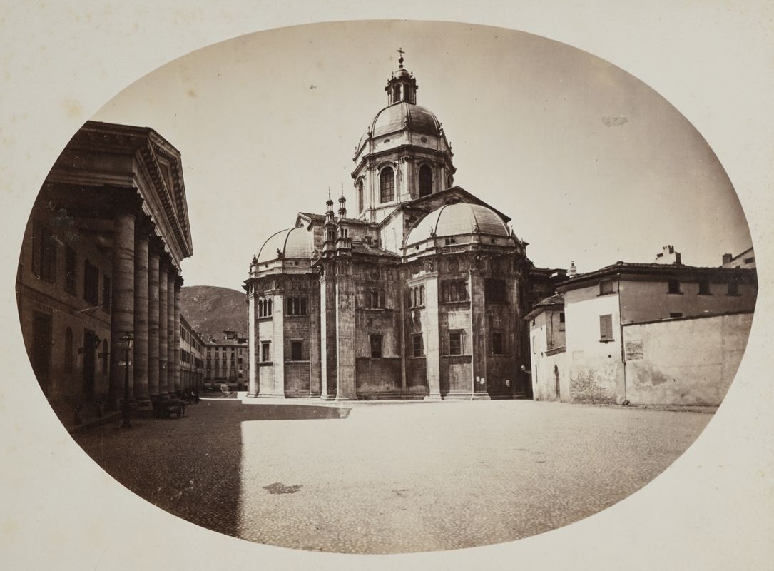 Due albumine (stampate in ovale), mm. 190x260 circa, applicate su cartoni originali, mm. 260x345 circa, che recano in basso a destra, a inchiostro, il titolo: "Como". Sul supporto di una delle due, in basso al centro, il timbro a secco ovale: "FOTOGRAFIA / NESSI / COMO". Stampe in buono stato di conservazione, qualche piega nella collatura delle stampe e piccoli graffi.