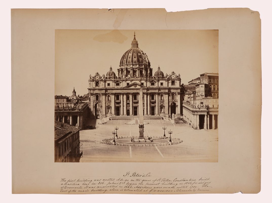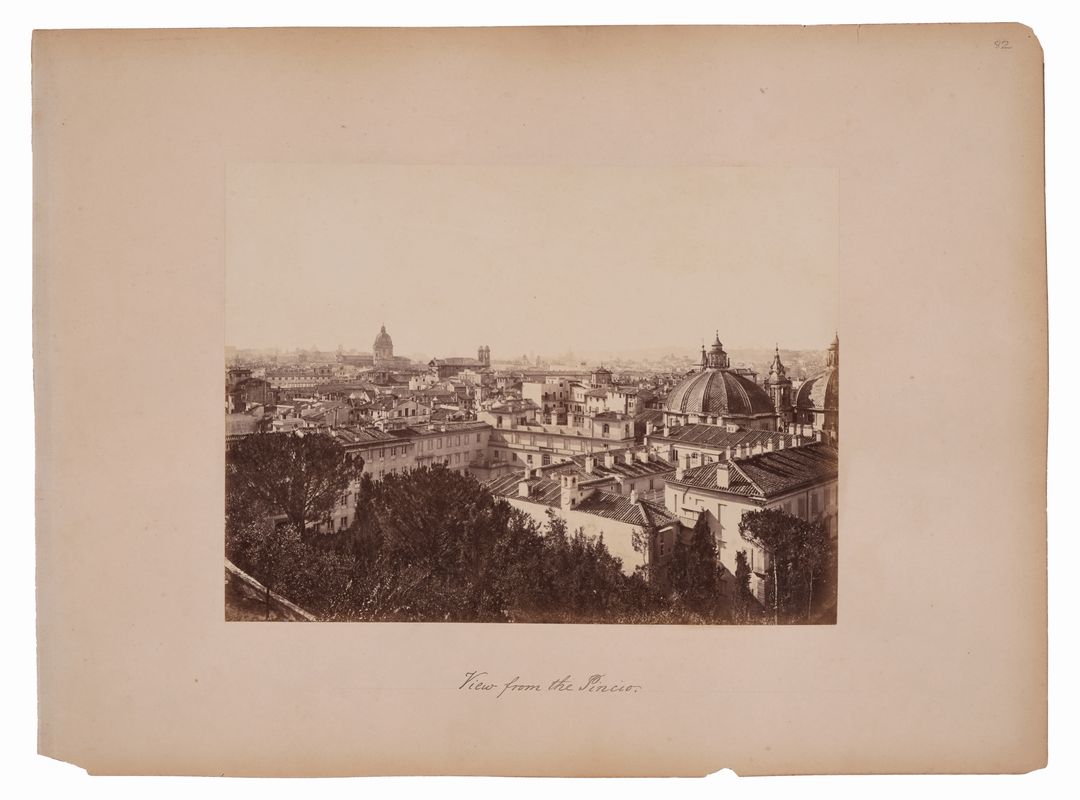 Otto albumine, mm. 205x260 circa, su cartoni originali, mm. 305x410, staccati da un album (tracce delle braghette della legatura originale), con numerazione a matita in alto a destra dei fogli. Sotto le immagini, sui cartoni, annotazioni didascaliche manoscritte a inchiostro, in inglese. Stampe dai toni indeboliti e ingiallimento anche dei cartoni. Alcune lacune nei bordi dei cartoni di supporto.
