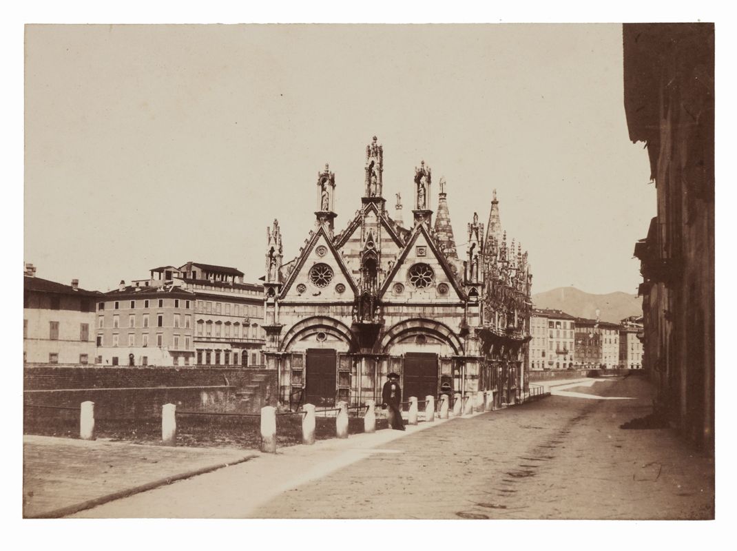 Albumina, mm. 167x232, applicata su cartone originale, mm. 236x309, con timbro a secco ovale in basso al centro: "H. & VAN LINT / SCULTORI / PISA / MAGAZZINO / DI OGGETTI DI BELLE ARTI" (due impressioni sovrapposte). Sotto, a sinistra, annotazione a inchiostro: "Pisa - S.ta Maria della Spina.". Stampa in ottimo stato, piccola abrasione al centro a destra.