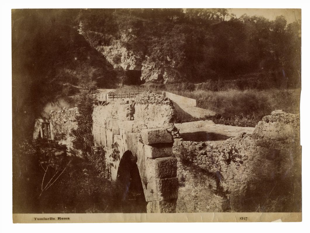 Albumina (da negativo su carta), mm. 245x331. Nell'immagine, lungo il margine inferiore, in etichetta apposta sul negativo, indicazioni editoriali: a sinistra "Tuminello, Roma" e a destra il numero "1547". Stampa in buono stato, dai toni vigorosi, precedentemente restaurata (integrazione di piccola lacuna e consolidamento di pieghe e piccoli strappi, soprattutto lungo il margine inferiore); macchie di foxing al verso. In passe-partout con coperta in cartone acid-free.
