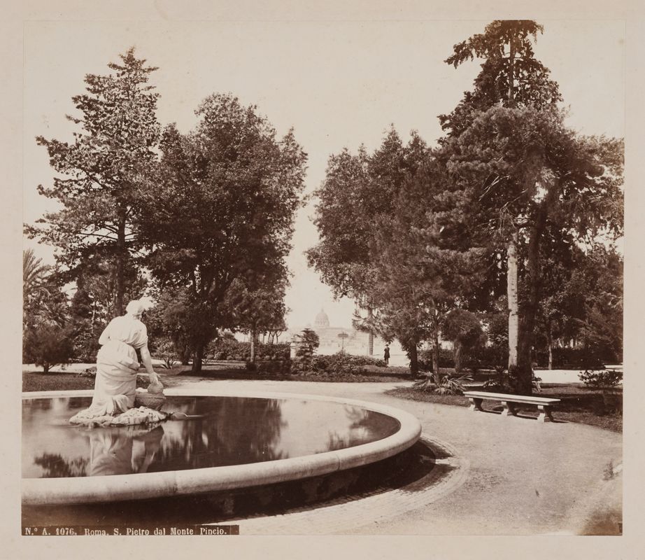 Albumina, mm. 197x232, applicata su cartone, mm. 304x411. Nell'immagine, in basso a sinistra, didascalia fotografica (in etichetta sul negativo): "N.° A.1076. Roma. S. Pietro dal Monte Pincio". Sul supporto, in basso a destra, annotazione non coeva a matita: "ROBERT RIVE / 1860". Stampa in ottimo stato. In passe-partout con coperta in cartone acid-free.