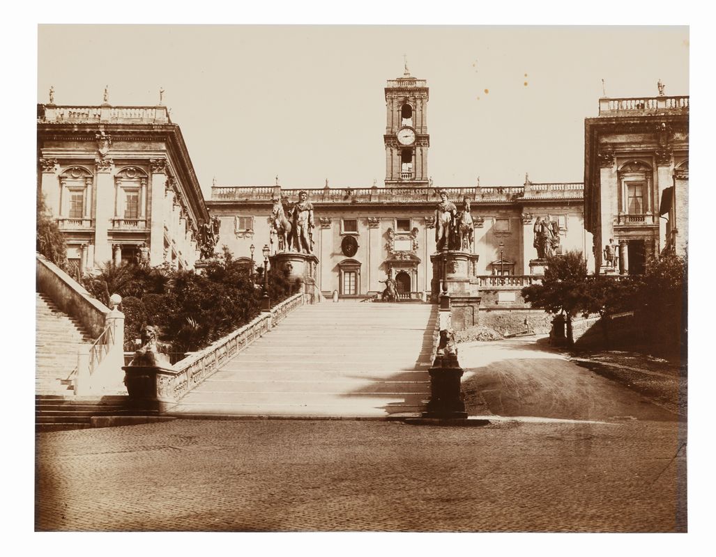 Albumina, mm. 303x392, su cartone, mm. 438x635. Sul supporto, in basso a destra, a matita: "Capitol Rome". Stampa in ottimo stato, dai toni forti con un'intonazione violacea. In basso a destra uno strappo integrato con ritocco e piccole macchie di foxing nel cielo. In passe-partout con coperta in cartone acid-free.