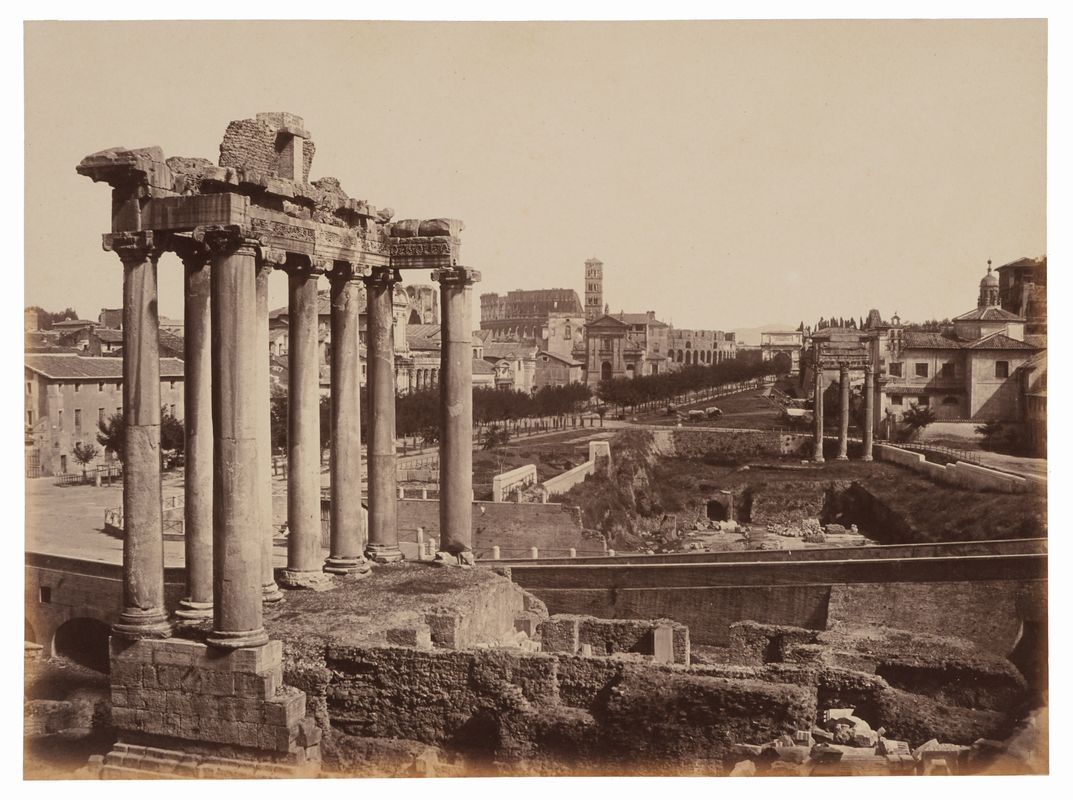 Roma. Veduta del Foro Romano con il Tempio di Saturno.