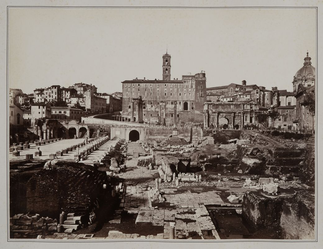 Albumina, mm. 315x418, su cartone, mm. 547x707. Fotografia riquadrata da doppio filetto a inchiostro. Stampa in ottimo stato, dai toni vigorosi. Ondulazioni e piccole macchie di foxing sul cartone.