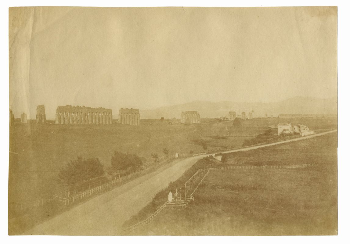 Carta salata (da negativo su carta), mm. 183x257. La stampa mostra uno sbiadimento dei toni (solfurazione) e qualche piega. In passe-partout con coperta in cartone acid-free.