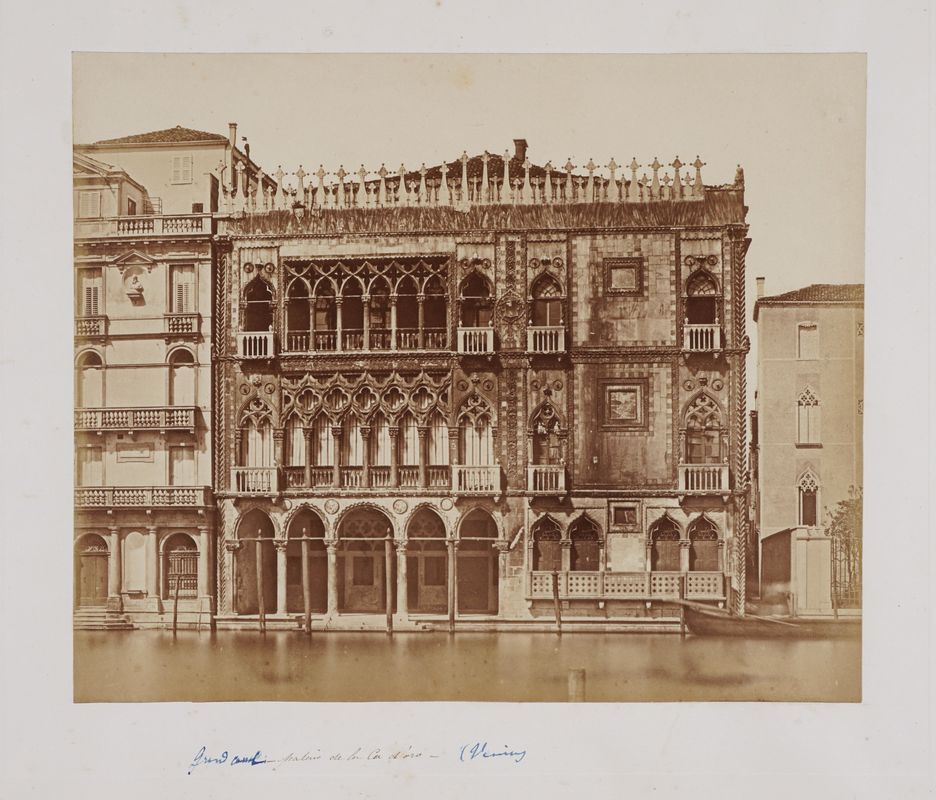 Albumina, mm. 224x274, applicata su cartoncino, mm. 338x492 entro uno schiaccio. Sul supporto, in basso, annotazione a inchiostro blu e nero: "Grand Canal – palais de la Ca d'oro – (Venise)". Stampa in ottimo stato. In passe-partout con coperta in cartone acid-free.