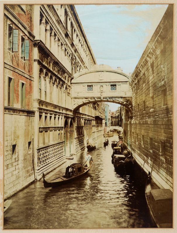 Albumina, mm. 545x420, in alcune parti colorata a mano; applicata su cartone, mm. 620x507 e montata in un vecchio passepartout (ingiallito e con residui di colla di un'antica incorniciatura). Stampa in buono stato.