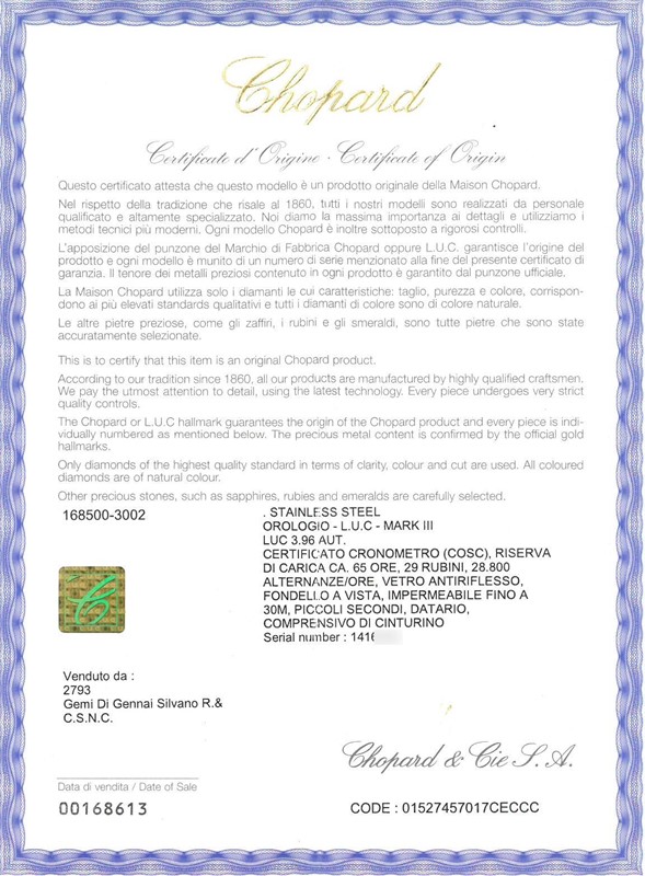 CHOPARD L.U.C. MARK III REF. 8500 N. 14167XX