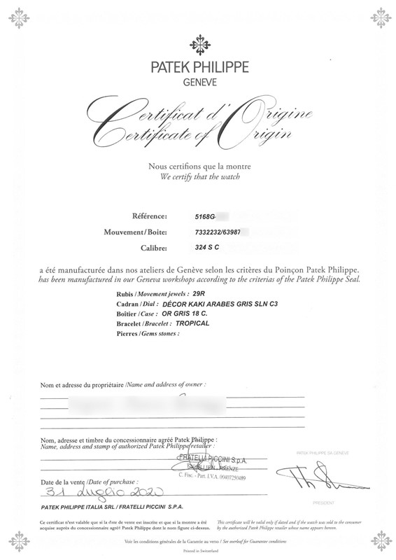 PATEK PHILIPPE AQUANAUT REF. 5168G N. 63987XX ANNO 2020