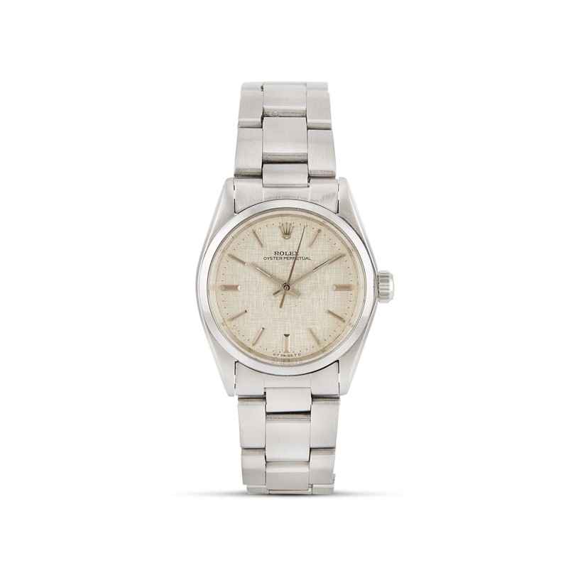 ROLEX OYSTER PERPETUAL "LINEN DIAL" REF. 6748 N. 35740XX STAINLESS STEEL WRISTWATCH, 1973