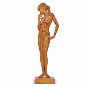 GIORGIO RASTELLI (Milano 1940) Figura di donna scultura in legno cm h. 173 L'opera è accompagnata da [..]