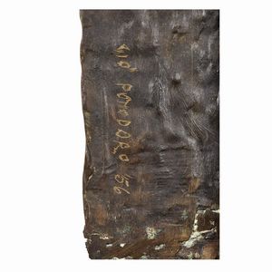 Questo bronzo decorava una fioriera in casa della proprietà ed era posto in orizzontale, venne modificato nel 1989 da Gio' Pomodoro che dotandolo di una base in marmo e posizionandolo in verticale lo trasformò in una scultura autonoma (cfr lettera Gio’ Pomodoro).
