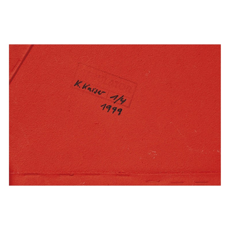 KIRSTEN KAISER (Hamm 1961) Regulation 1999 panno, cono stradale e triangolo su ruote dimensione in base all' installazione esemplare 1/4 al retro timbro, firma e numerazione