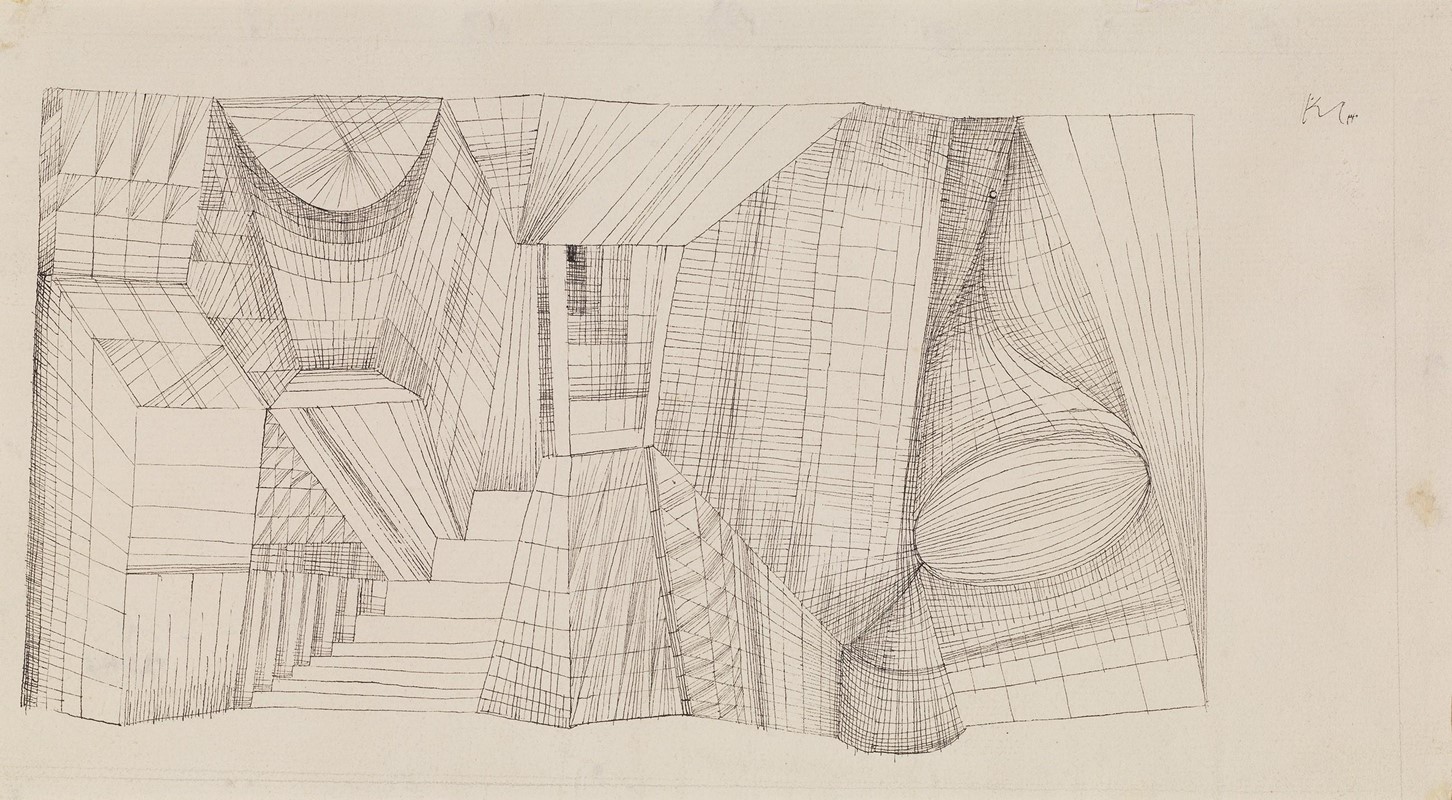 PAUL KLEE (Muchenbuchsee 1879 - Muralto 1940) Senza titolo 1928 china su carta pesante applicata su velina cm 17x30 su velina cm 24,5x36,5 firmato in alto a destra