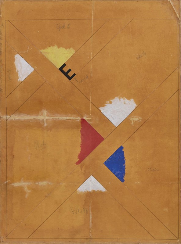 E. Hoek, M. Blokhuis, S. van Faassen, I. Goovaerts, N. Kamphujs, R. Koot, M. Kramer (a cura di), Theo Van Doesburg, oeuvre catalogue, Centraal Museum Utrecht, Kroller - Muller Museum Otterlo, p. 410, n. 766b in cui vengono riportate le dimensioni originali dell’opera, e le scritte riportate su tutta la superficie: weisz//Gelb//weisz//letteryp//Rot//Blau//Weisz