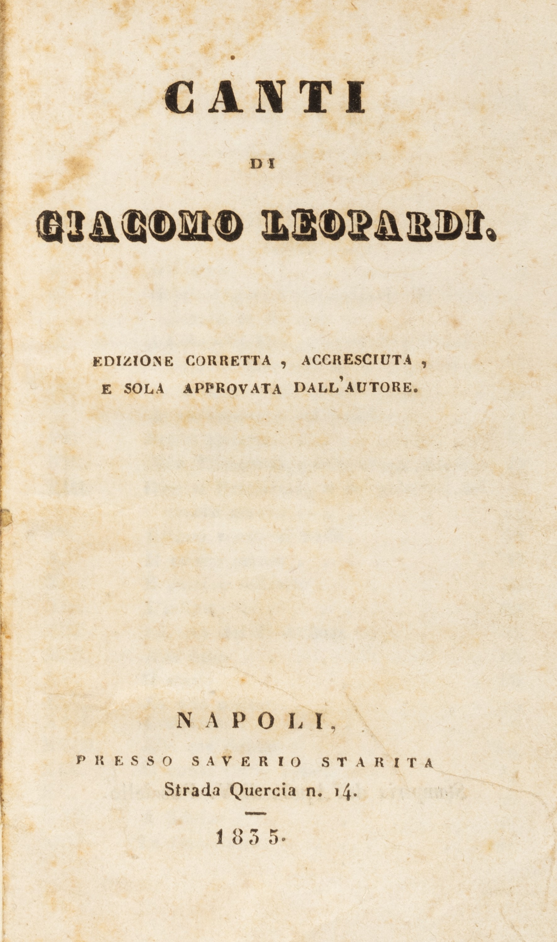 Canti di Giacomo Leopardi. Edizione corretta, accresciuta, e sola approvata dall [..]