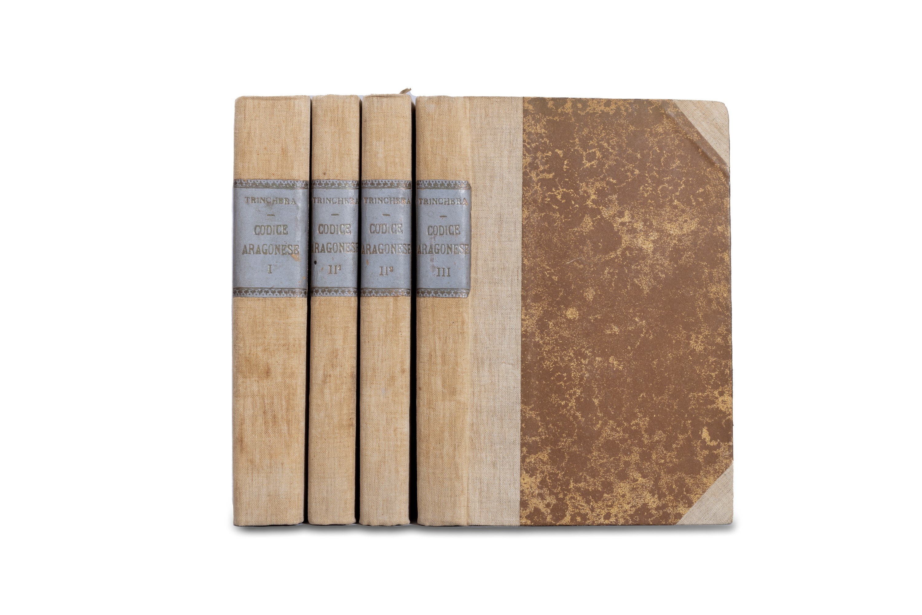 Napoli, Stabilimento Tipografico di Giuseppe Cataneo 1866 - 1879, poi Tipografia di Antonio Cavaliere, 1874. In 8°, voll. 4, pp. CLV-562; XXXVI-384-512; XVI-422. Legatura in mezza tela, tassello, titolo in oro, lievi difetti