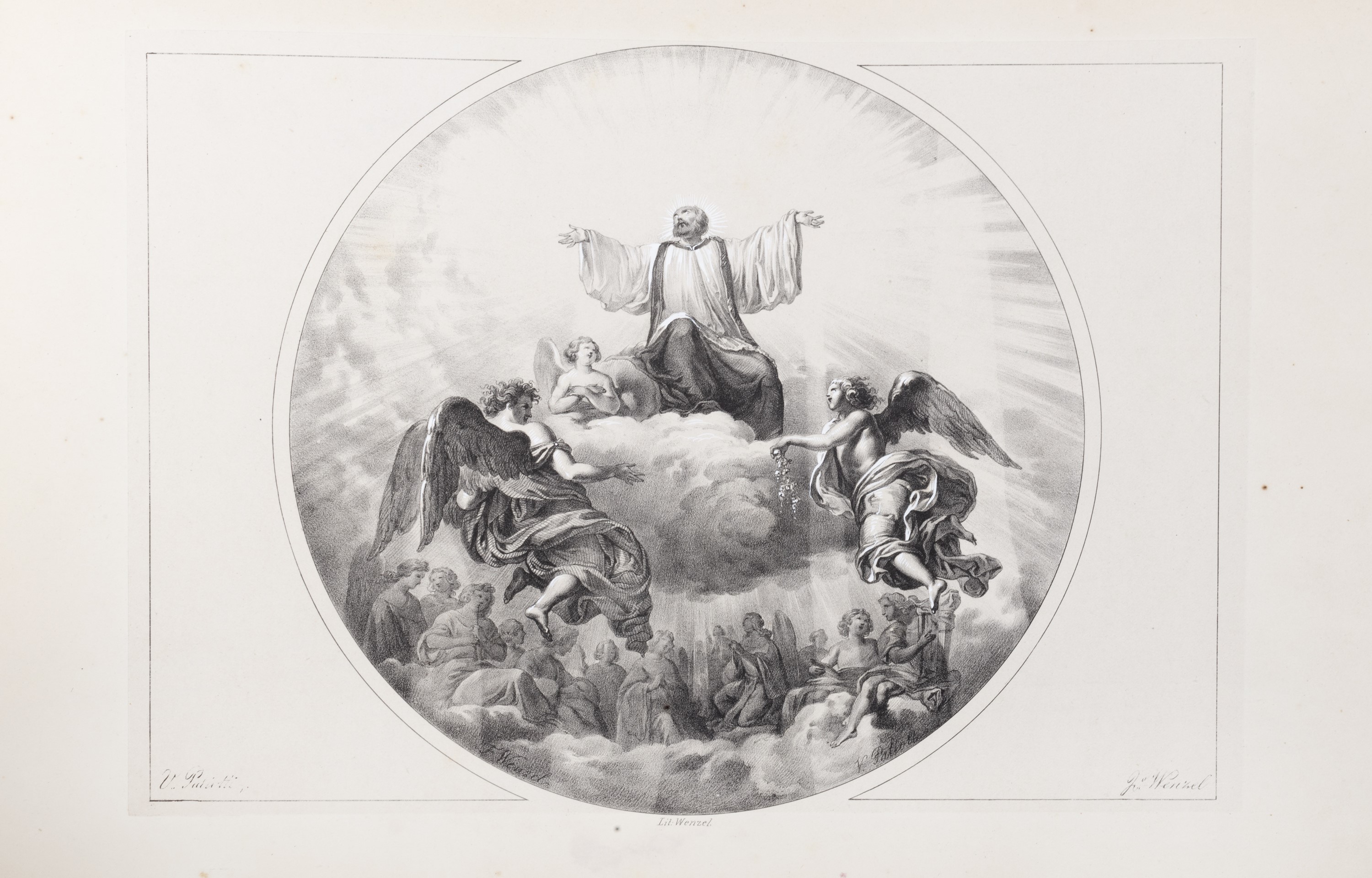 Napoli, 1856. In 4° oblungo. 13 tavole contenenti 21 litografie di F. Wenzel, illuminate a biacca, su disegni di V. Paliotti. Leggere tracce di umido al bordo inferiore, legatura coeva in tela, cornici e fregi in oro e a secco ai piatti.