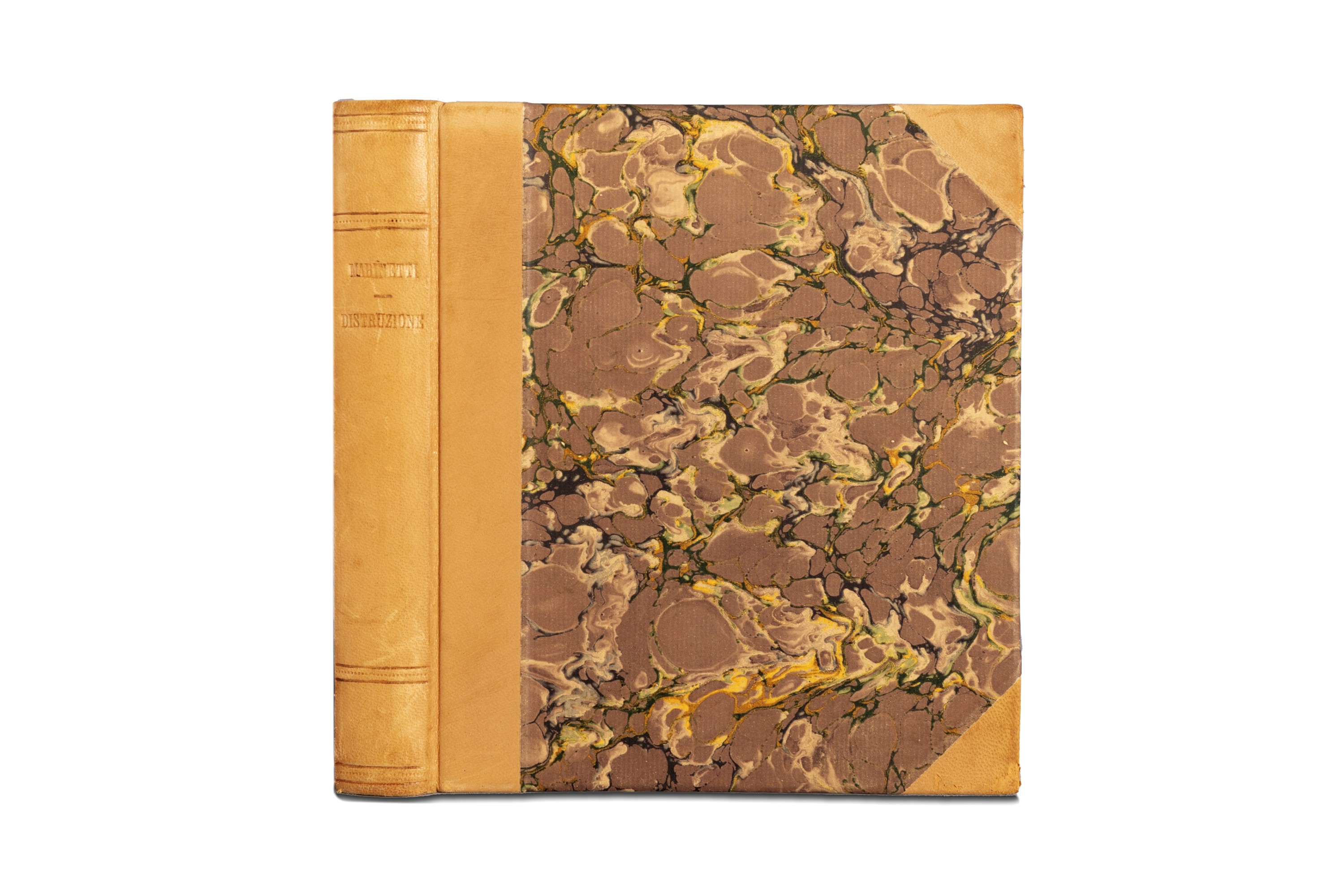 Milano, Edizioni Futuriste di Poesia, 1911. In 8°, pp. 259-(5) + 100-(8). Legatura in mezza pelle con angoli, titolo e fregi in oro al dorso, copertine originali conservate, lievi difetti. Ex libris.