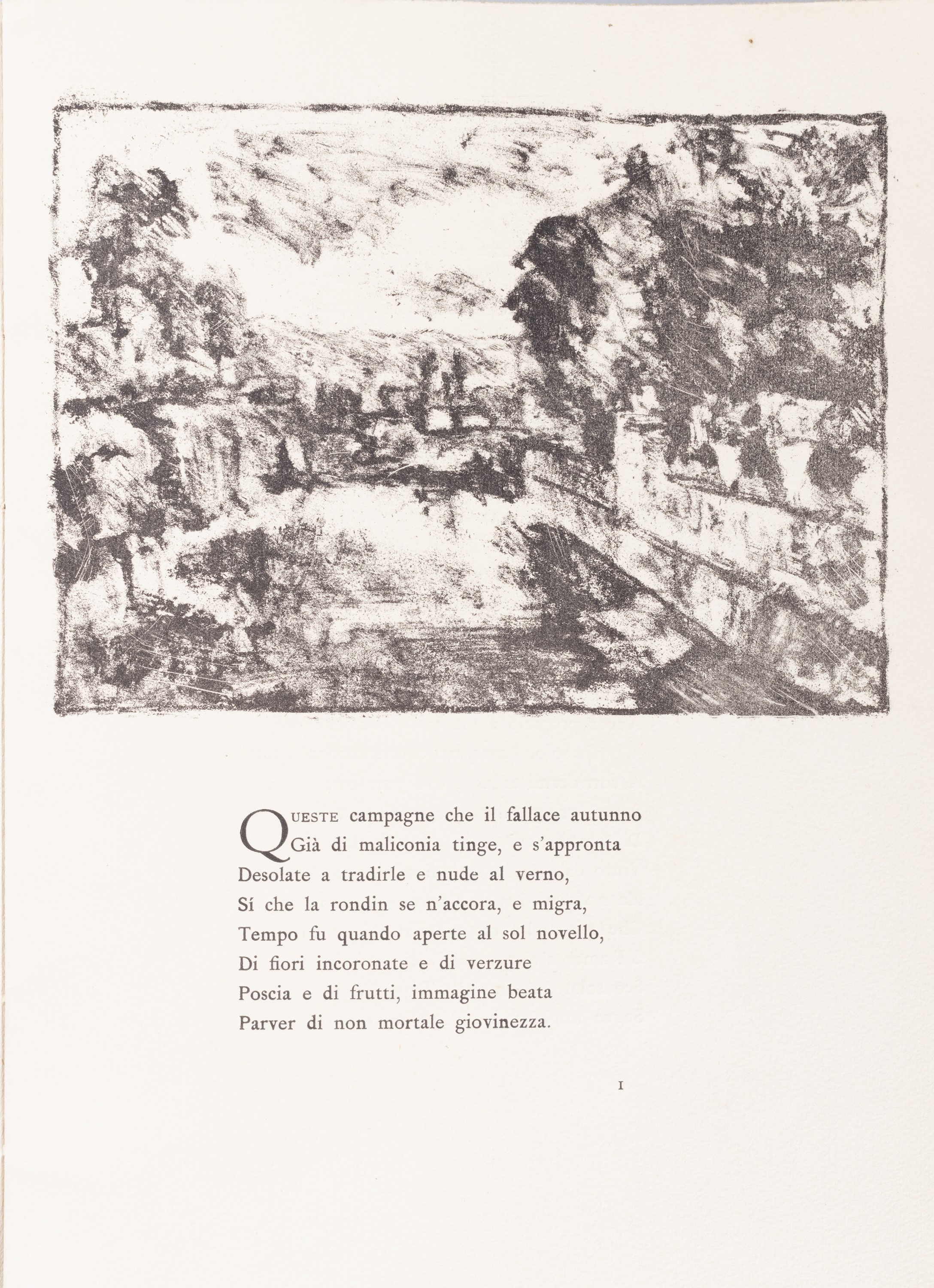 1927 Firenze, Vallecchi, Editore, 1927. In 2°, 360 x 255 mm., pp. (6)-8-(6) con 2 xilografie originali dell'autore poste come testatina e finalino, altre due xilografie ornano il frontespizio e la copertina. Brossura editoriale, lievi difetti.