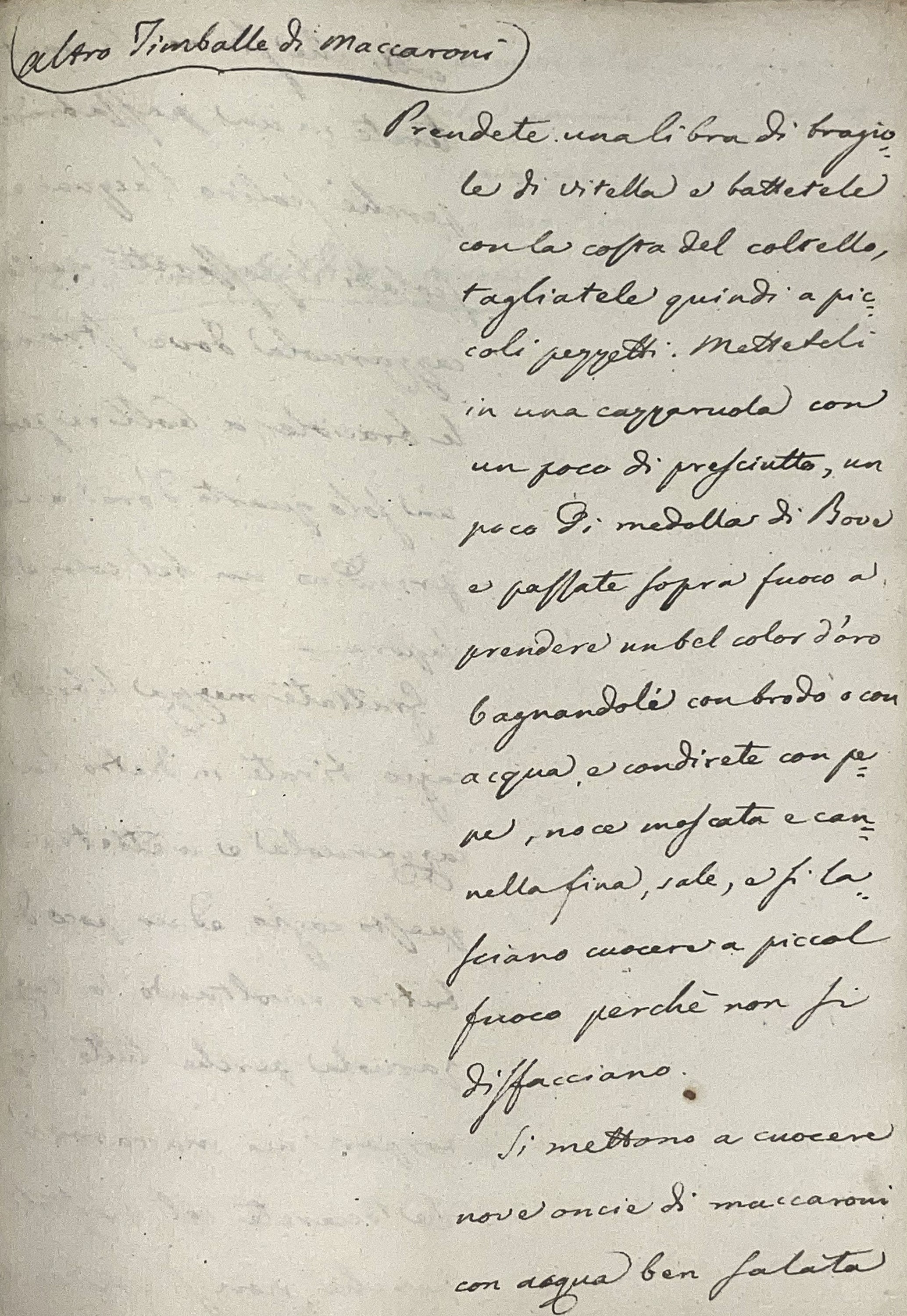 1800 Manoscritto cartaceo di oltre 200 pp., assemblato, recante un indice iniziale dettagliato, alcune carte bianche e il testo principale a mezza colonna che principia da una Minestra eccellente economica (mancano le prime due pagine) e si conclude con la ricetta del Bianco mangiare alla vainiglia, legatura in cartone ricoperto da carta decorata, sciupata. titolo al dorso. Ex libris Westbury al contropiatto.