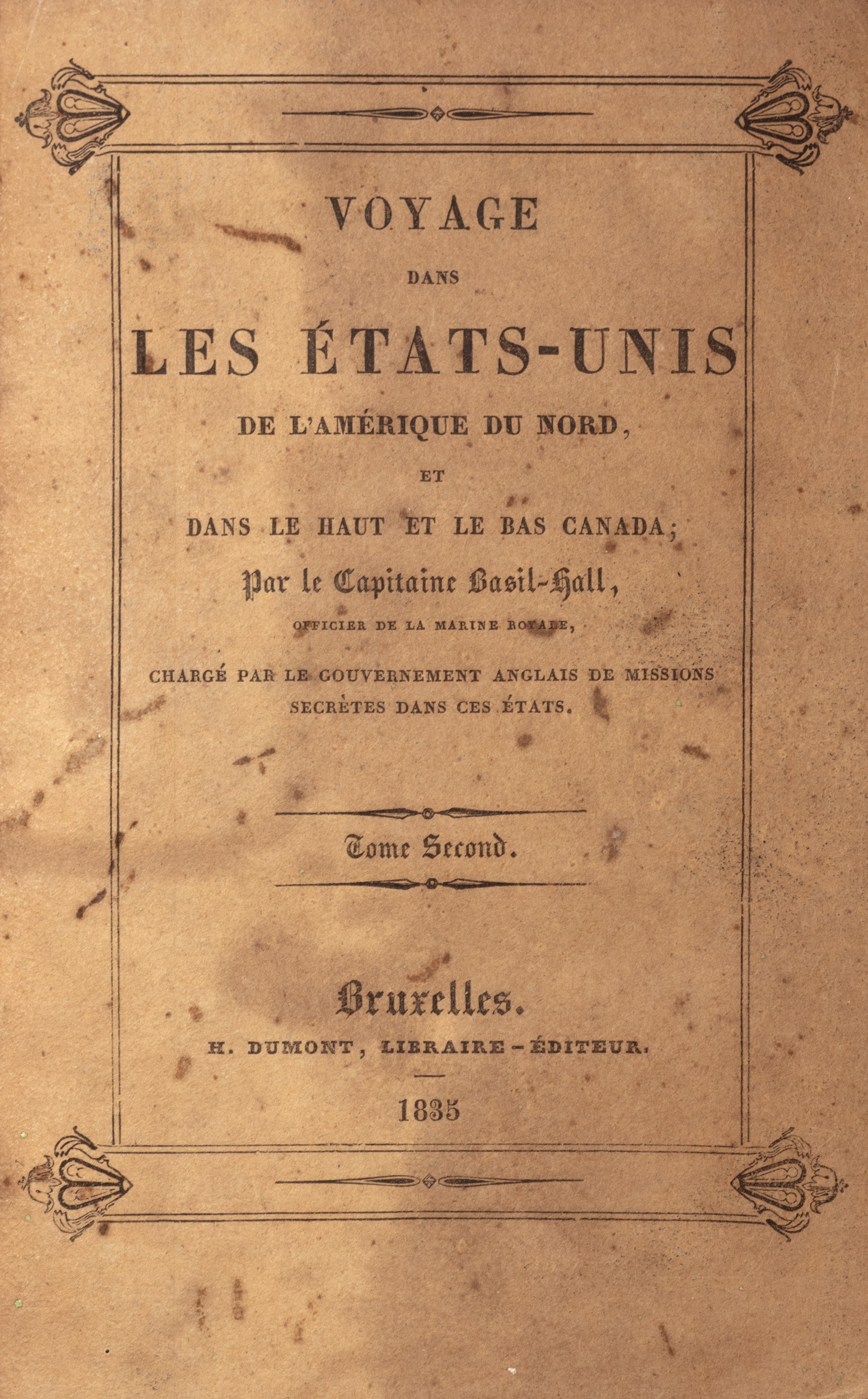 1721 Napoli, Felice Mosca, 1721. In 8°. Marca xilografica al frontespizio, iniziali incise in legno, lavoro di tarlo restaurato al margine interno delle prime carte e ultime carte, piccolo lavoro di tarlo su alcune carte, lievi fioriture, legatura coeva in pergamena, lacuna all'angolo del piatto posteriore, lievi difetti. § Capitaine Basil-Hall, Voyage dans les Etats-Unis de l'Amérique du Nord, et dans le Haut et le Bas-Canada, Bruxelles, Dumont, 1835. Leggera brunitura, rare lievi fioriture, brossura editoriale originale conservata entro legatura moderna in tela rossa, autore e titolo impressi in oro entro tassello al dorso, lievi difetti alle brossure.