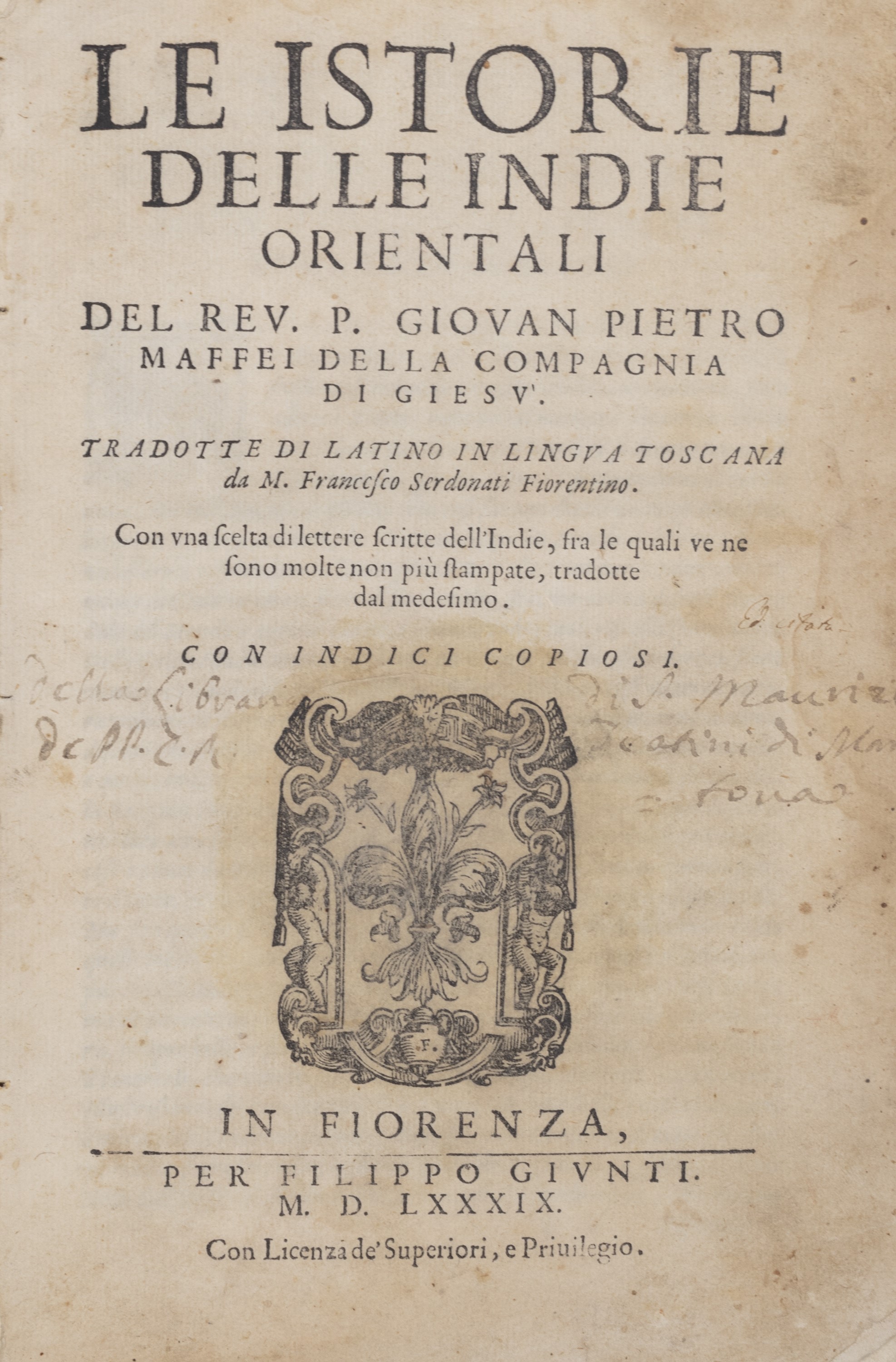 Firenze, Filippo Giunti, 1589. In 4°. Frontespizio con marca tipografica, fregi tipografici incisi in legno, frontespizio foderato, aloni e macchie, alcune carte con mancanze ai margini, legatura del sec. XIX in mezza pergamena, lievi difetti.