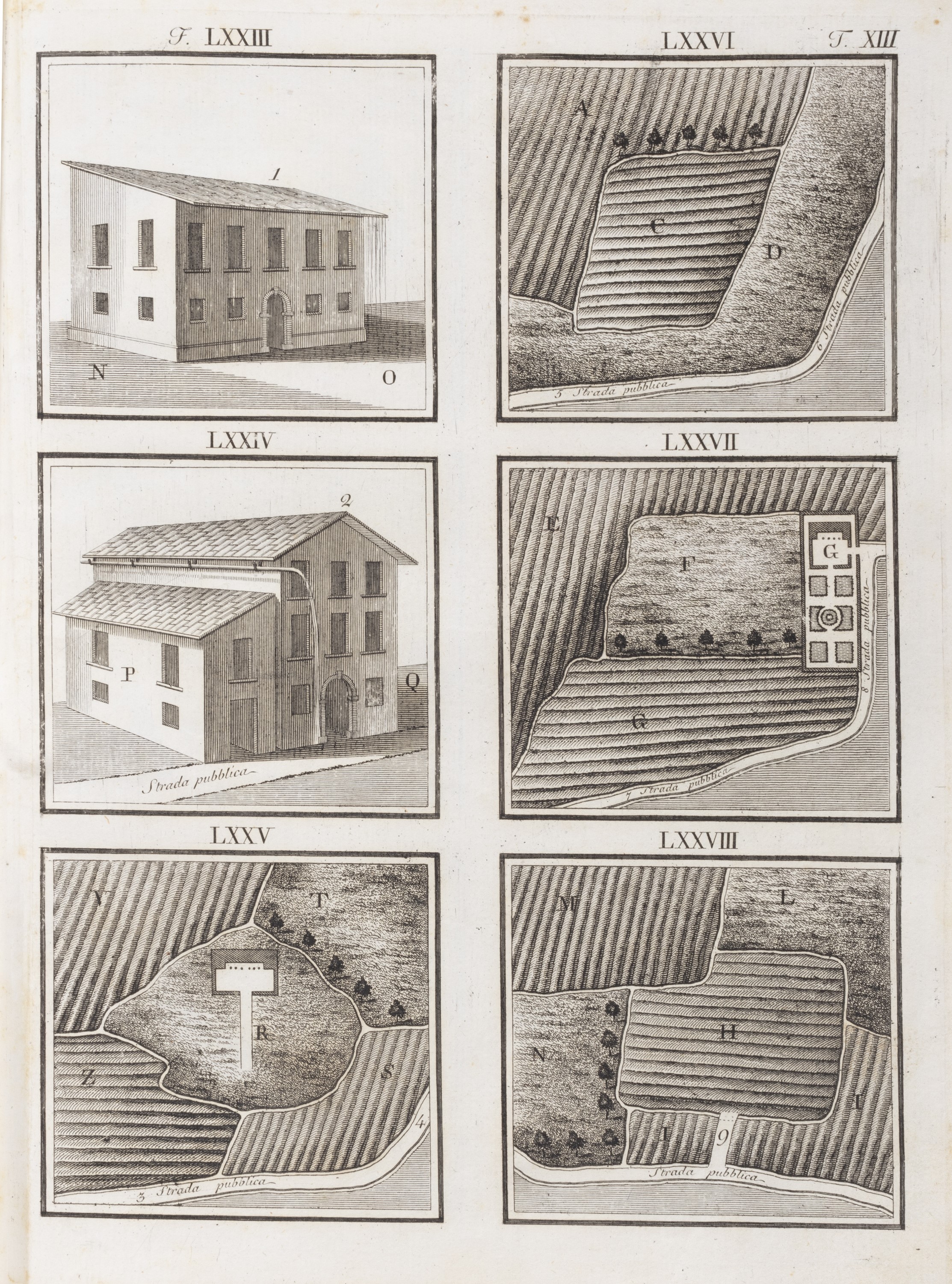 1808 Brescia, Niccolò Bettoni, 1818. In 4°. Con 24 tavole incise in rame numerate in fine volume, testo in francese ed italiano, lievi fioriture, piccolo strappo all'angolo superiore della tav. XIV, legatura coeva in mezza pergamena con angoli, titolo in oro entro tassello al dorso liscio, tagli gialli, lievi difetti.