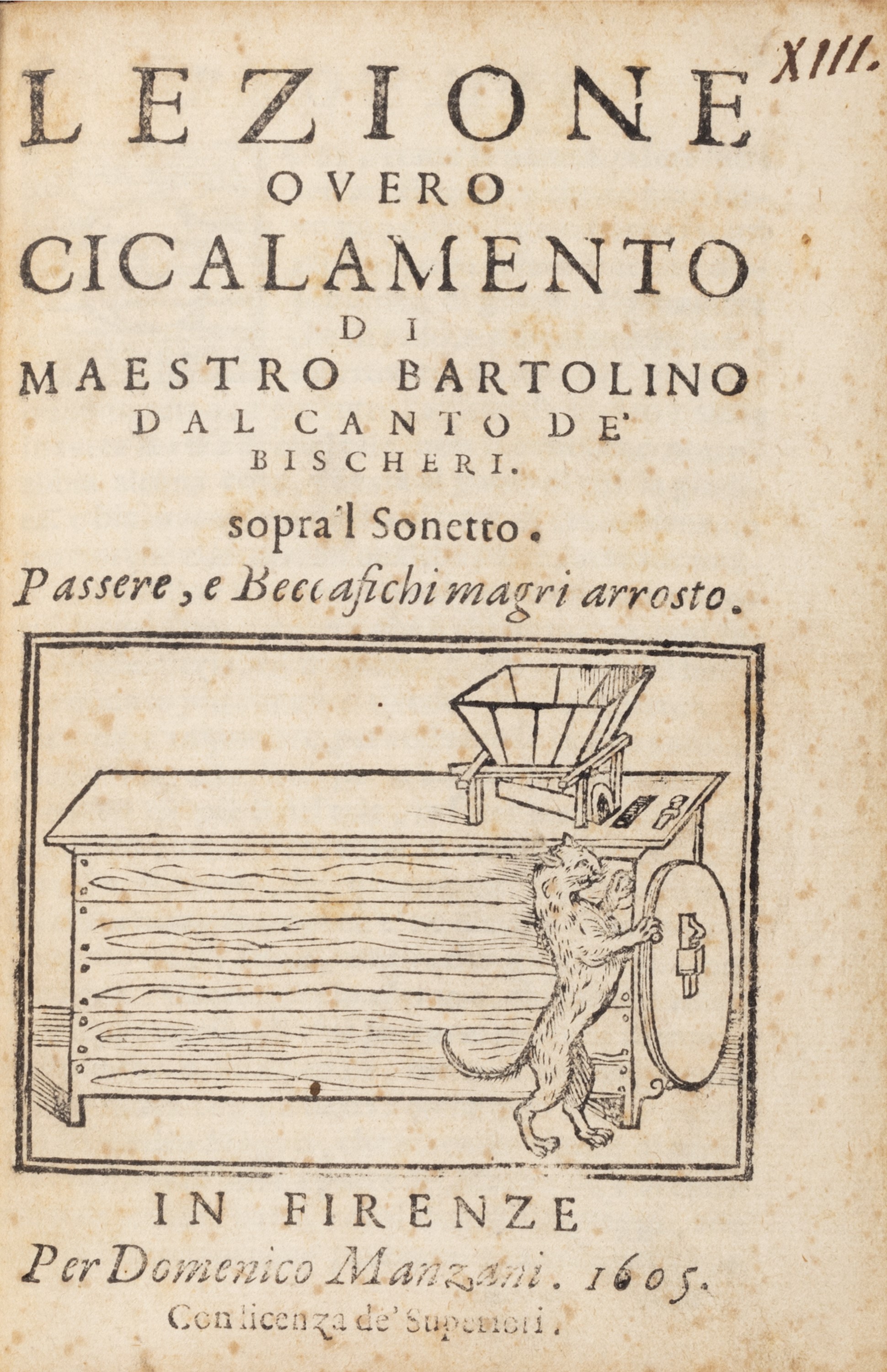 Lezione o vero Cicalamento di Maestro Bartolino dal Canto de' Bischeri sopra 'l [..]