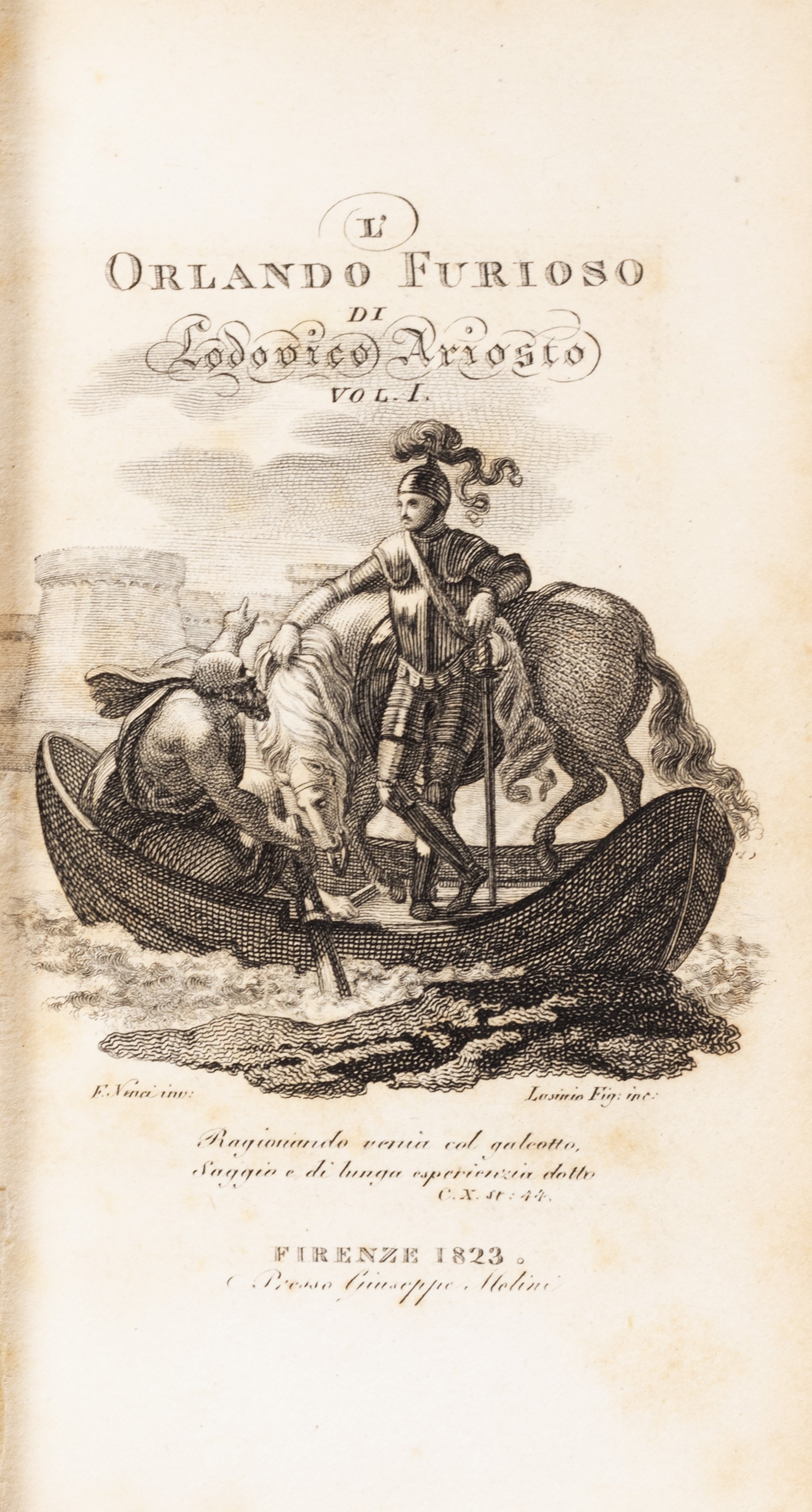 1823 Firenze, Giuseppe Molini, 1823. In 12°. 2 voll. Antiporte e frontespizi calcografici di Francesco Nenci incisi da Lasinio figlio, rare e lievi fioriture, poche carte con leggerissima brunitura, legatura coeva in mezza pelle, autore e titolo impressi in oro al dorso con eleganti fregi in oro, lievi difetti.