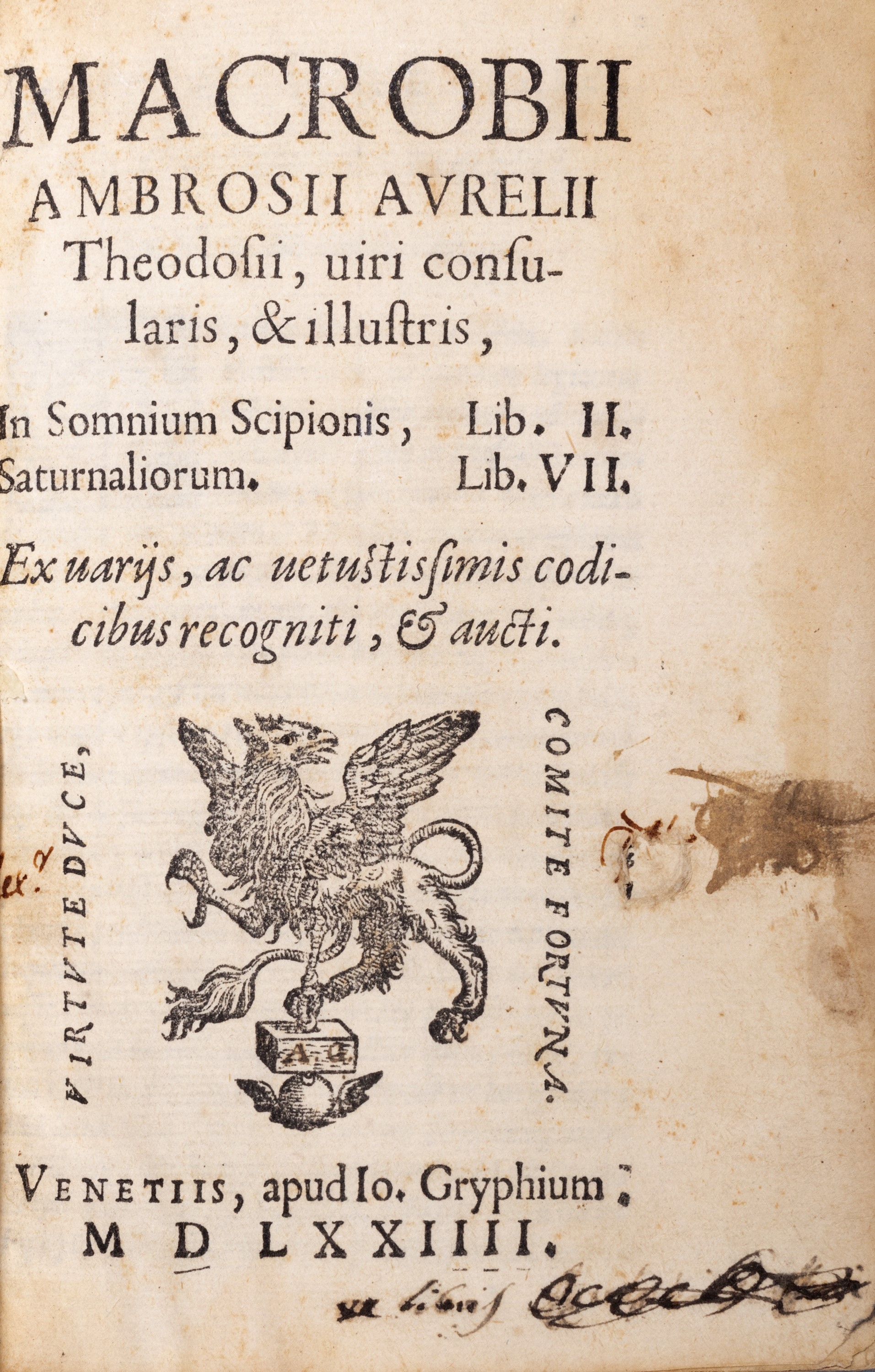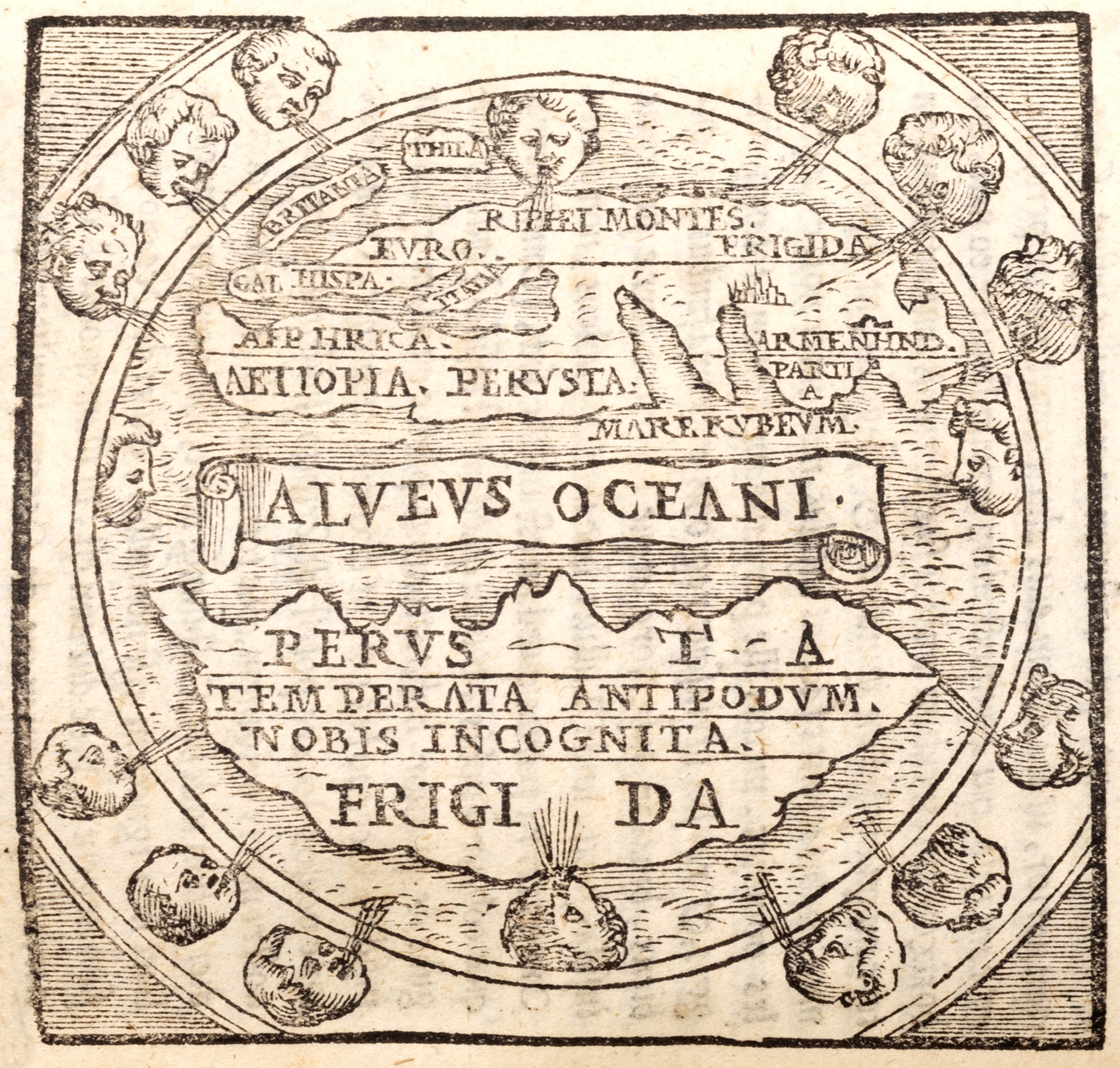 Venezia, Giovanni Griffio, 1574. In 8°, marca tipografica al frontespizio, con 8 incisioni n.t. incluso il mappamondo che comprende anche la Terra Incognita che alcuni credevano fosse l'America, capilettera incisi, antiche glosse marginali, lievi difetti.