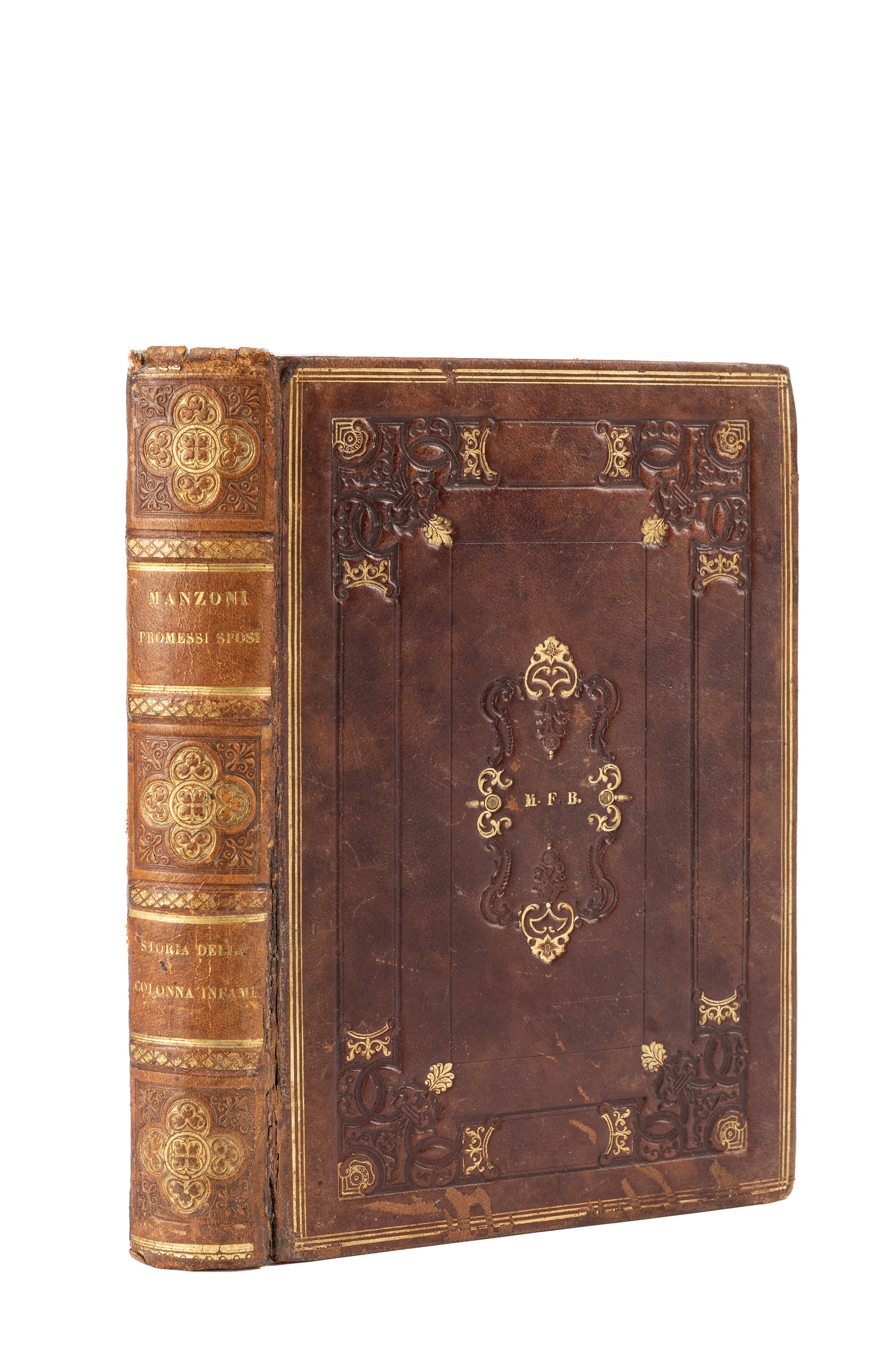 Milano, Guglielmini e Redaelli, 1840. In 4°. mm. 280 x 180. Antiporta e vignetta al frontespizio in xilografia, testo inquadrato da cornice di duplice filetto, 450 incisioni in legno nel testo opera di Francesco Gonin, arrossature sparse e fioriture, Elaborata legatura in marocchino marrone, dell'epoca con ai piatti cornici di filetti in oro, agli angoli festoni a rilevo al centro del piatto le inziali FBM in oro, dorso a 4 nervi in vitello, con autore e titolo, in oro e decorazioni a rilievi, qualche spellatura, angoli sciupati e con lievi mancanze. Al contropiatto tassello di Santo Ricchini.