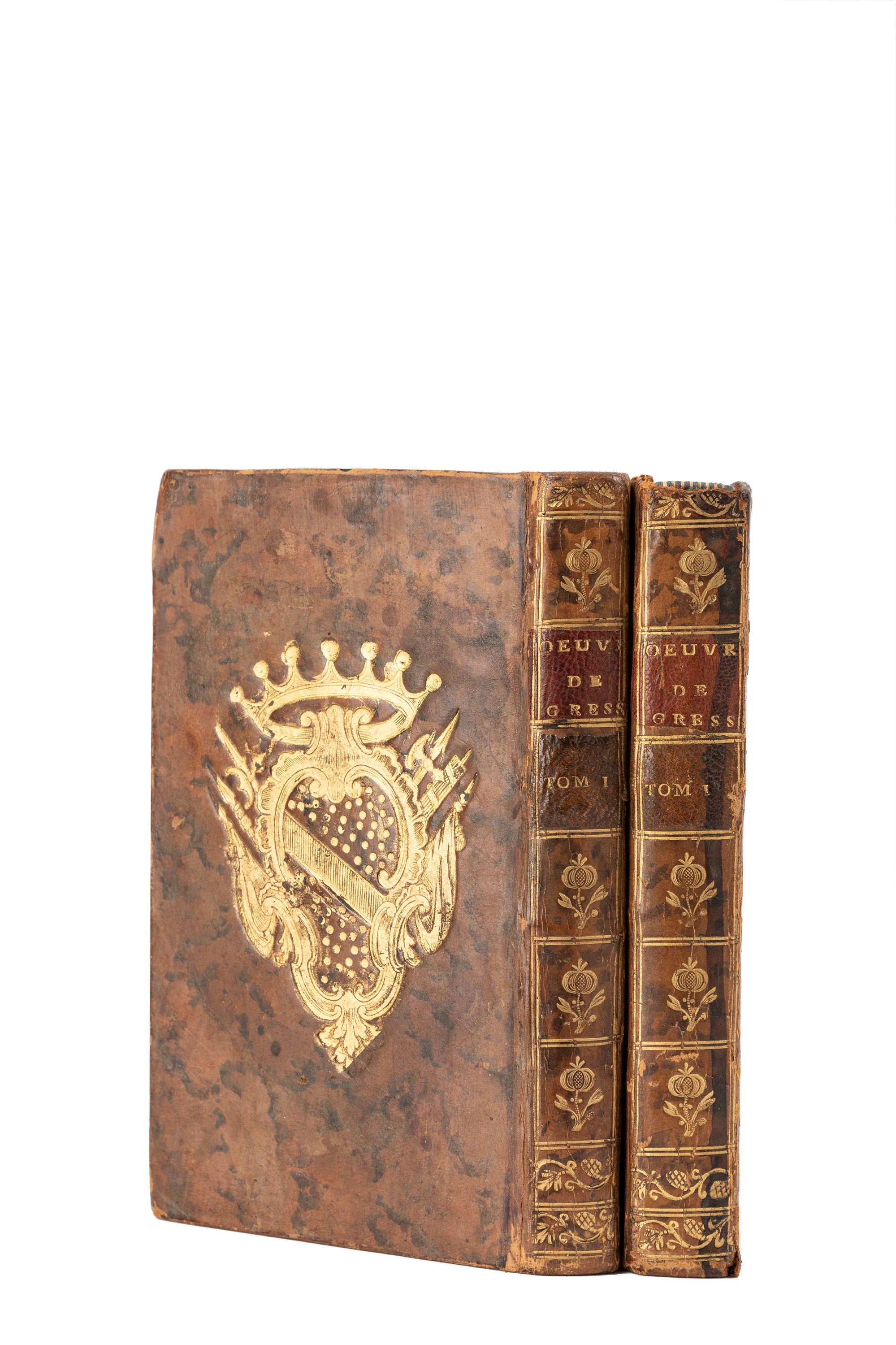 Londra, E. Kelmarneck, 1748. In 8°. 2 voll. fregio ai frontespizi, testatine tipografiche, legature coeve in vitello marrone marmorizzato, al centro dei piatti armi non identificate impresse in oro, tagli rossi. lievi difetti. Timbro nobiliare ai frontespizi.