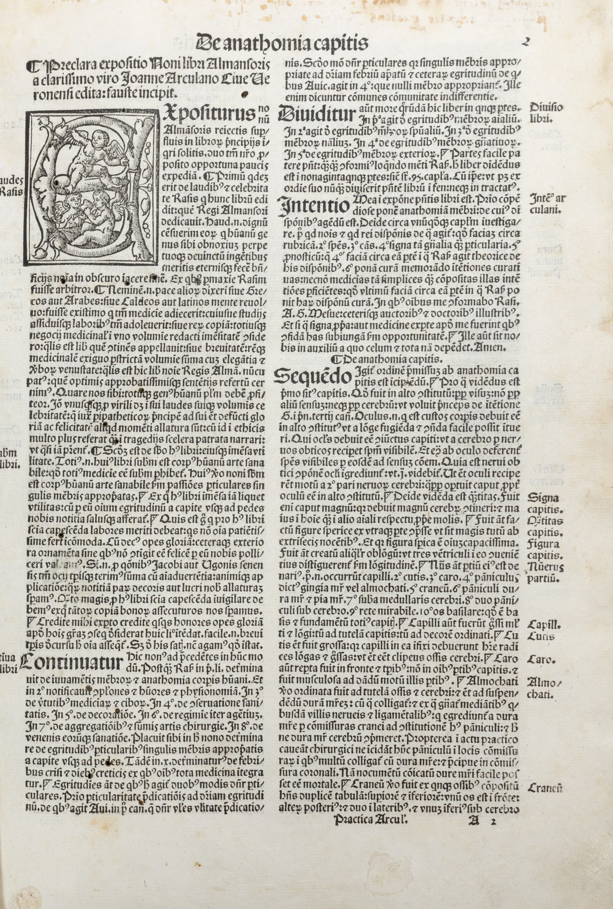 1519 Al colophon, Venezia Lucantonio Giunti, 1519. In2°. Testo in gotico disposto su doppia colonna, capilettere figurati, annotazioni di mano antica, macchie, fori di tarlo che in alcuni fogli lede lo specchio di scrittura, legatura in cartonato del sec. XX.