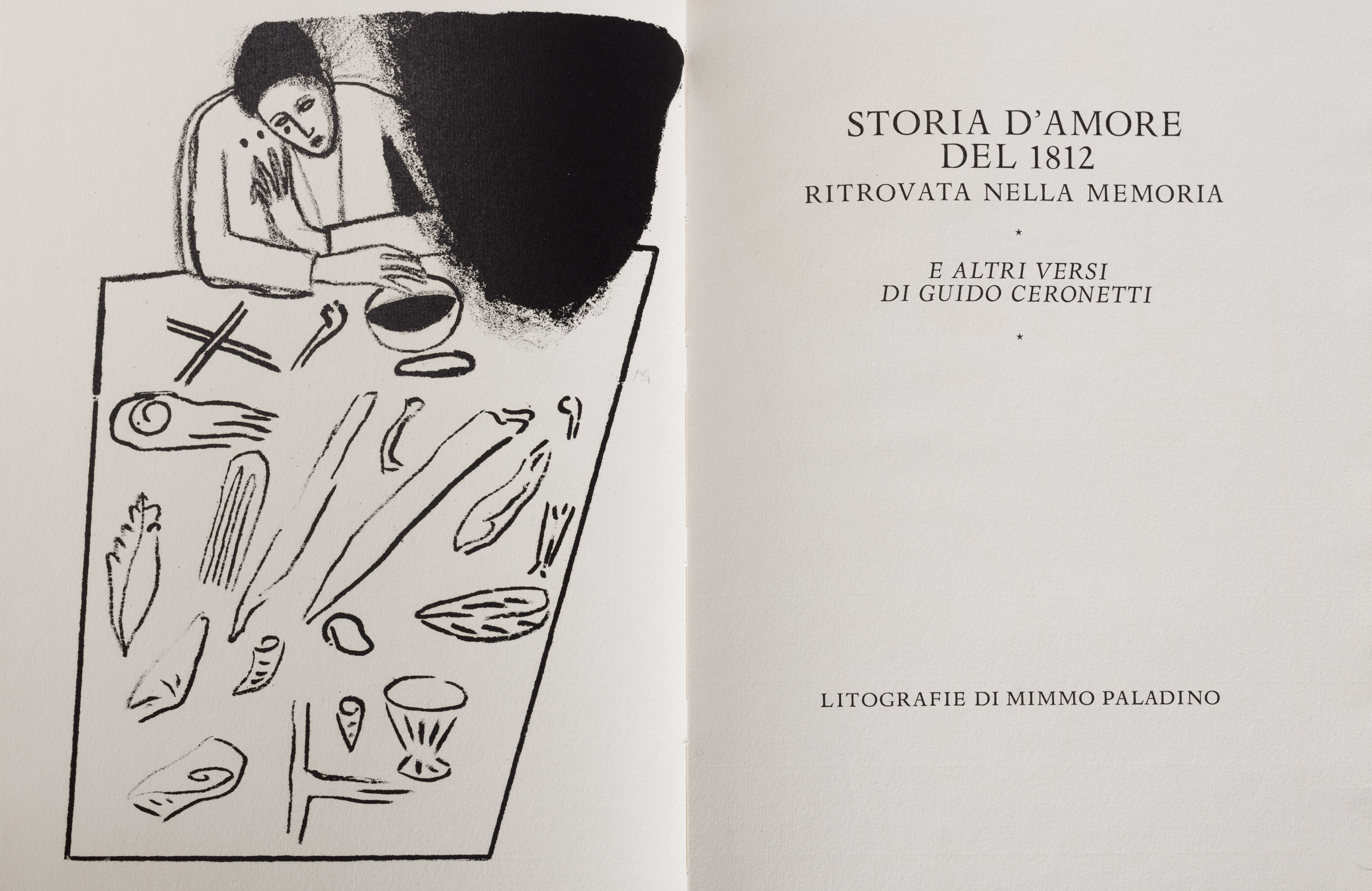 Verona, Il sole entra nell'ariete, 1987. In 4°, pp. 32-(6) con 13 litografie originali di Mimmo Paladino di cui 6 a piena pagina. Legatura editoriale in mezza pelle, titoli in oro al dorso, taglio superiore dorato; conservato in astuccio editoriale. Lievi difetti