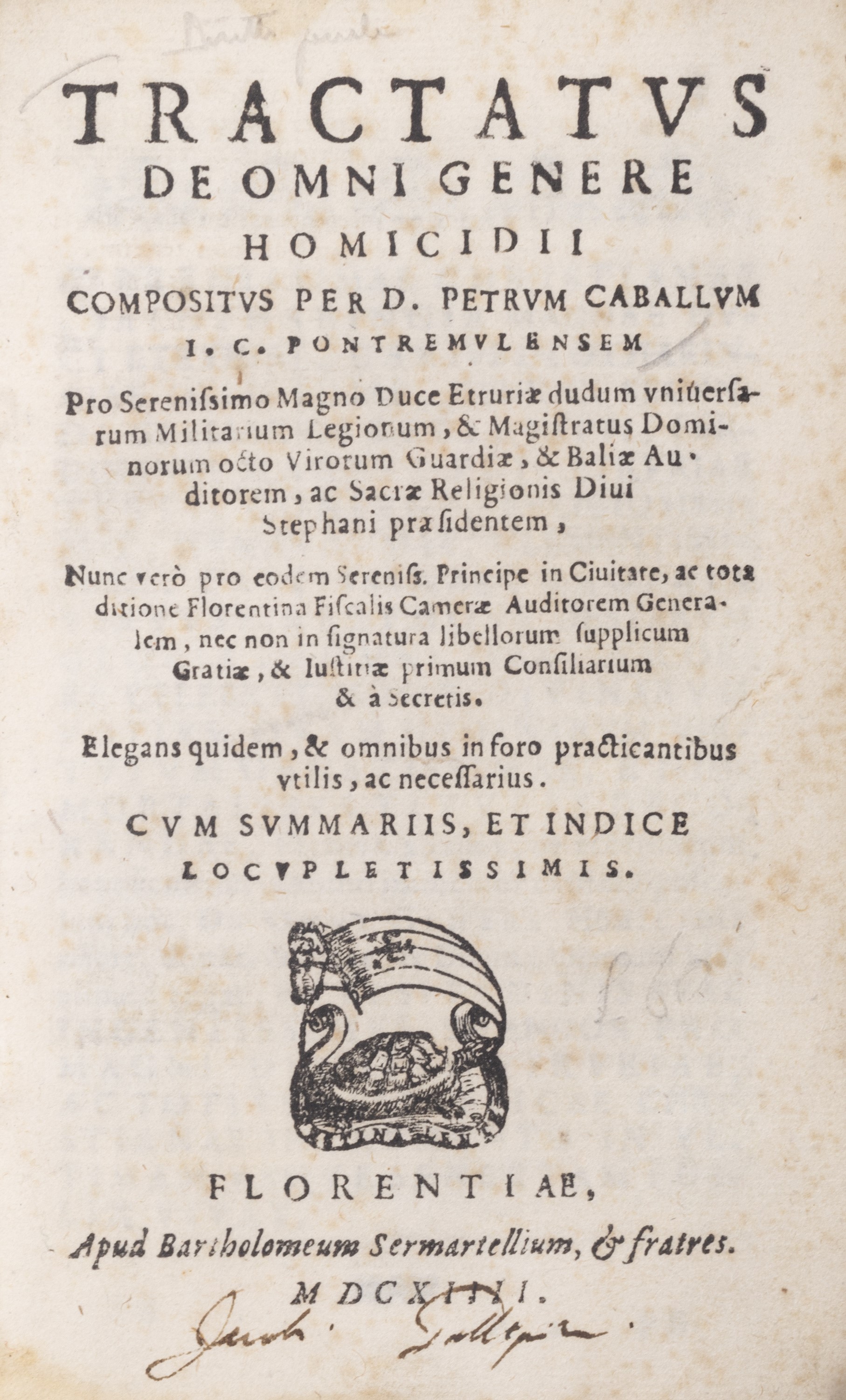 Firenze, Bartolomeo Sermartelli, 1614. In 8°. Marca al frontespizio, iniziali e fregi incisi in legno, legatura coeva in pergamena floscia, autore manoscritto al dorso, tracce di tasselli cartacei al dorso, lievi difetti. Nota di possesso al frontespizio e alle carte di guardia.