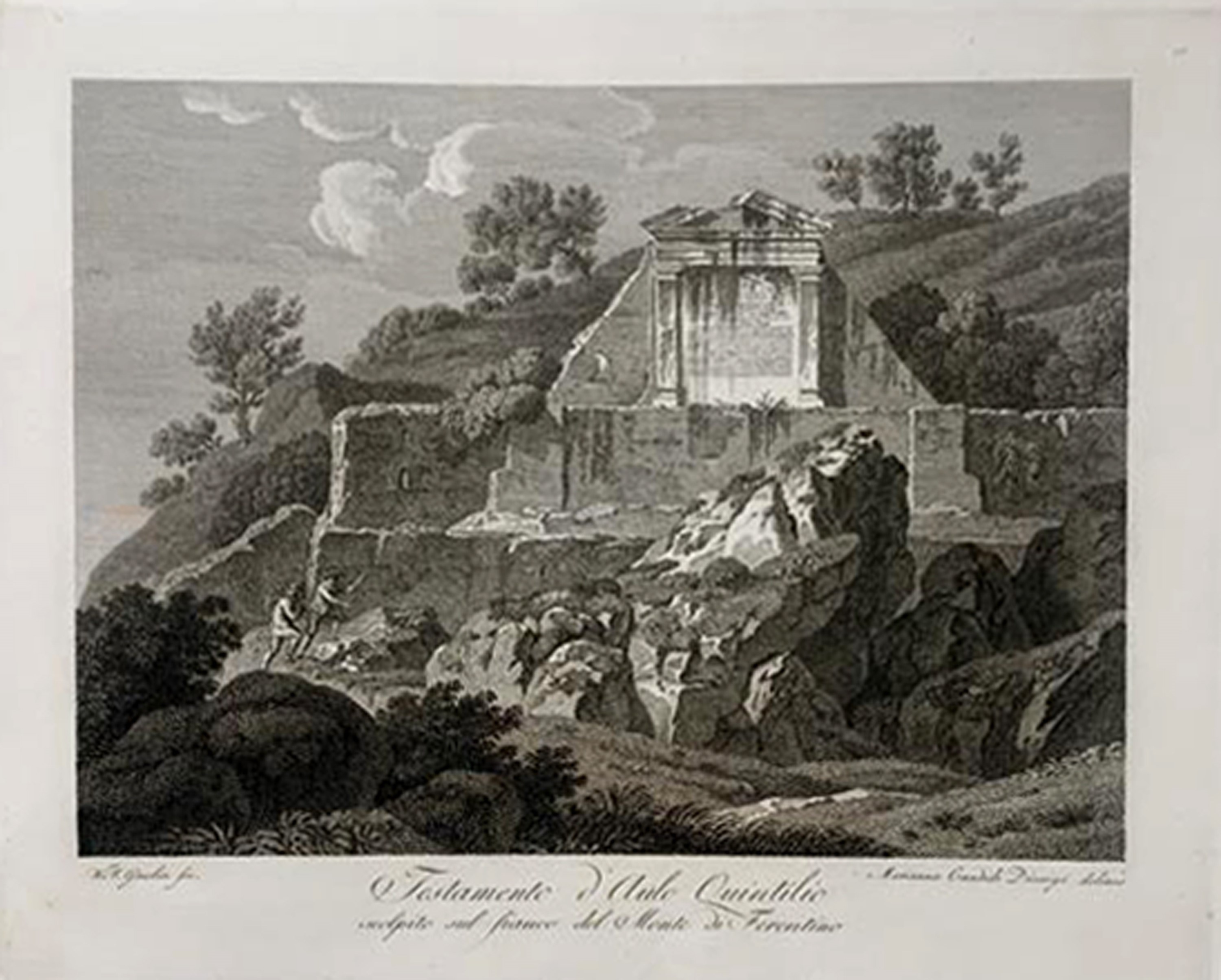 1845 Roma, Luigi Perego Salvioni, negli anni 1809, 1810, 1811. In 2° oblungo. Con 30 tavole incise all'acquaforte disegnate da Marianna Dionigi, testo inquadrato da cornice tipografica, lievi fioriture sparse, alcune gore d'acqua marginali, legatura coeva in mezza pelle e carta decorata, titolo impresso in oro entro tassello rosso al dorso, piccole mancanze al dorso e abrasioni, lievi difetti.